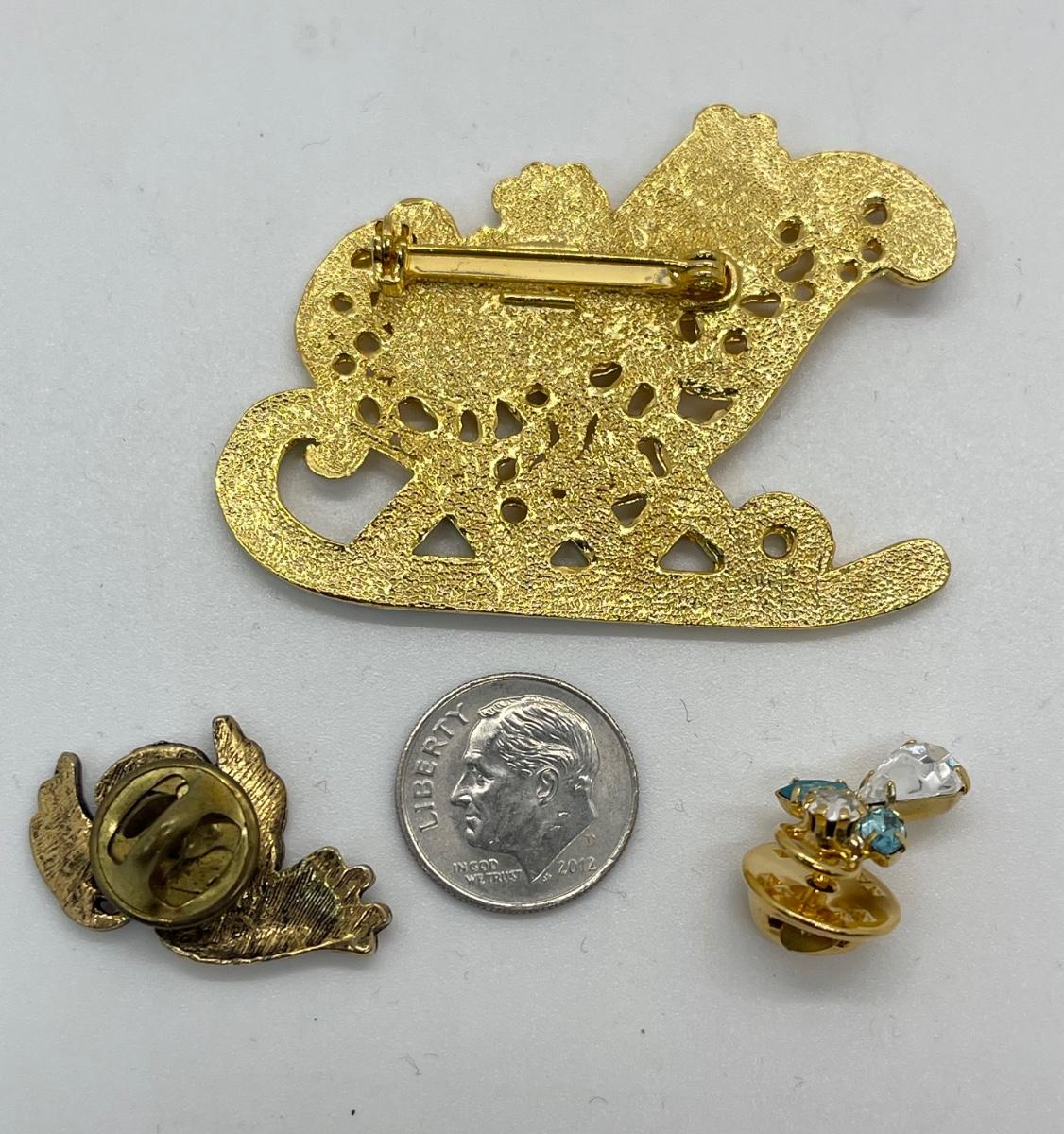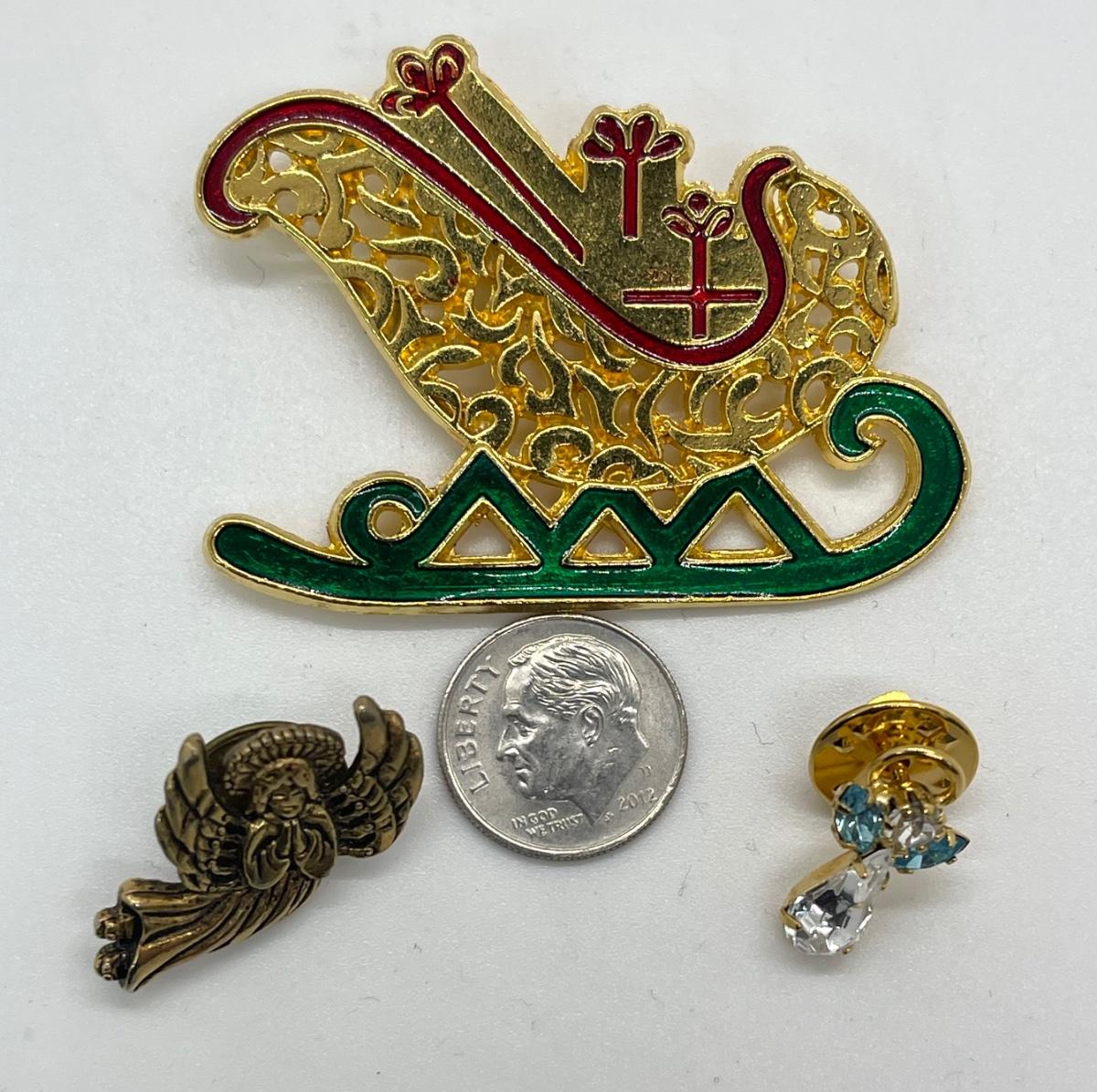 Christmas Holiday Seasonal Fashion Costume Pin Brooch Lot Sleigh Angels