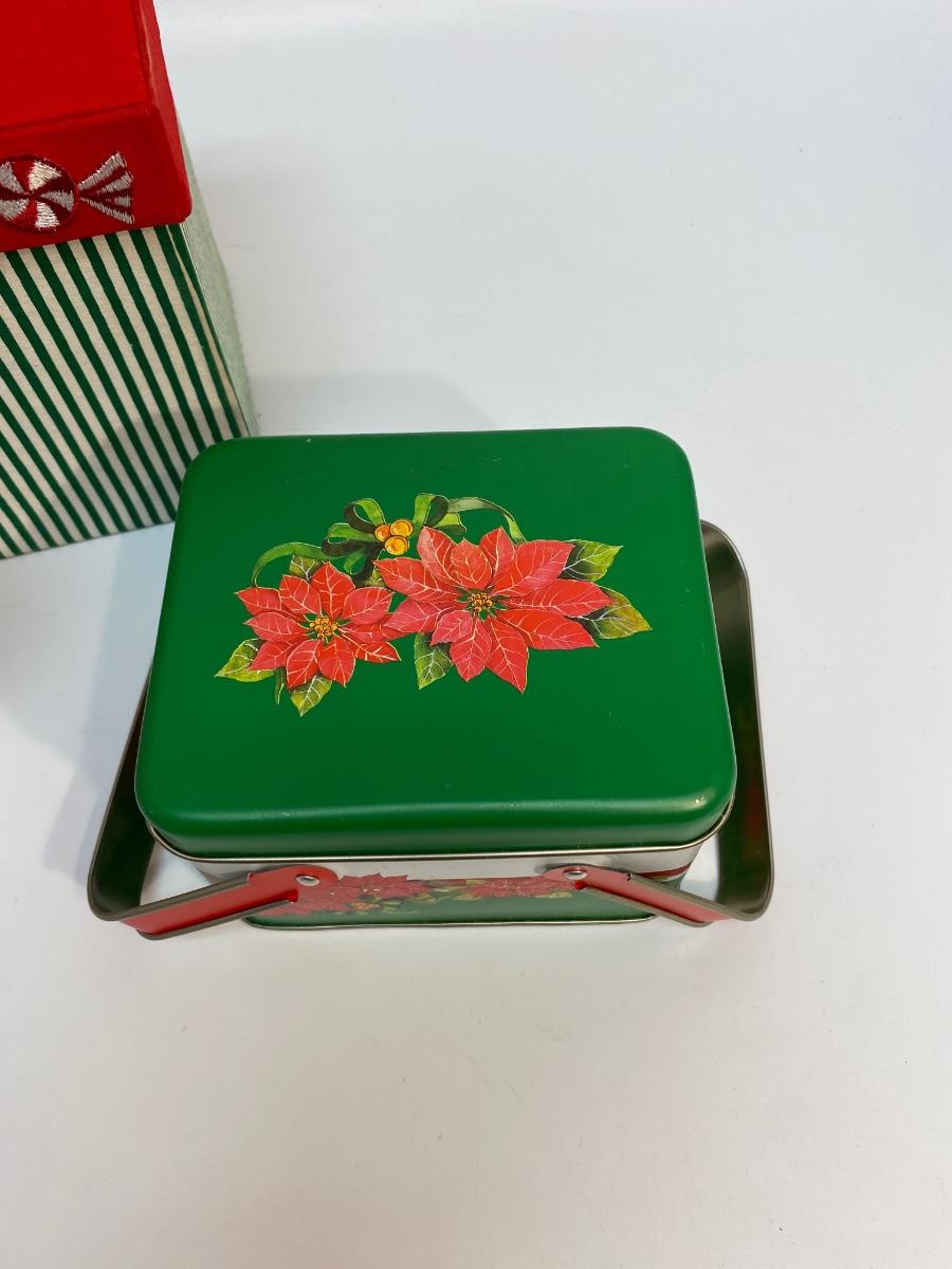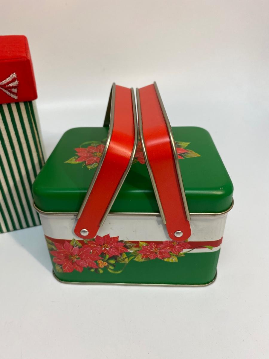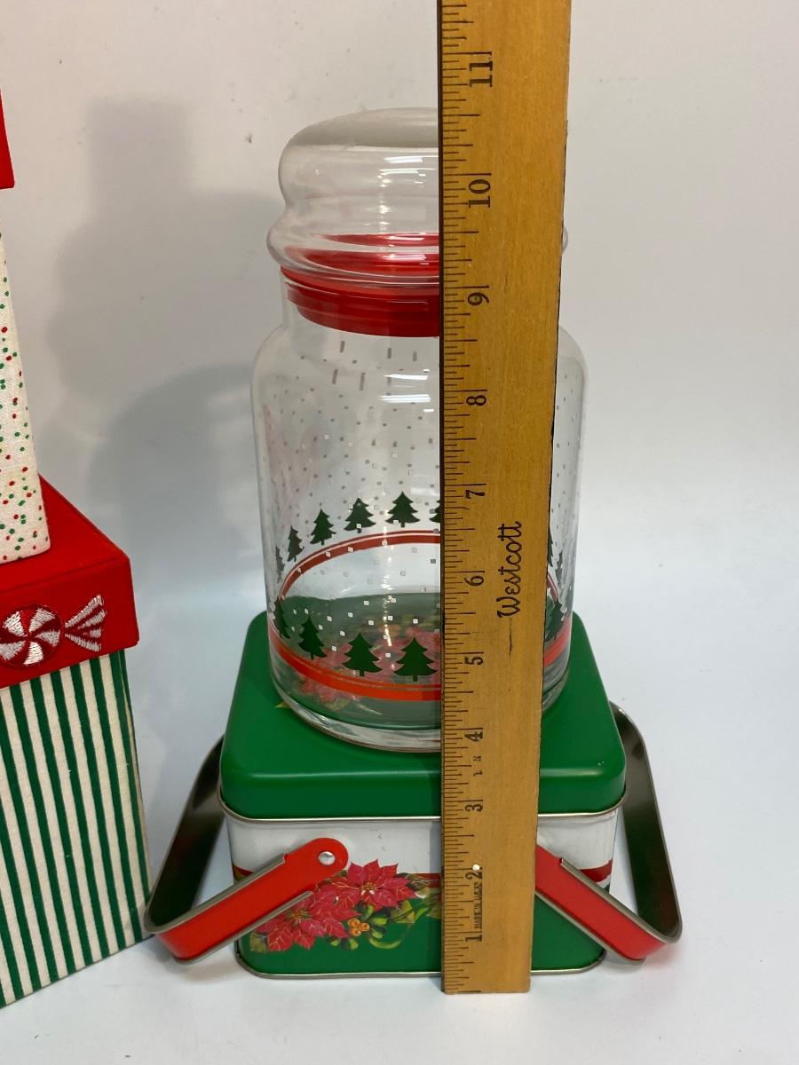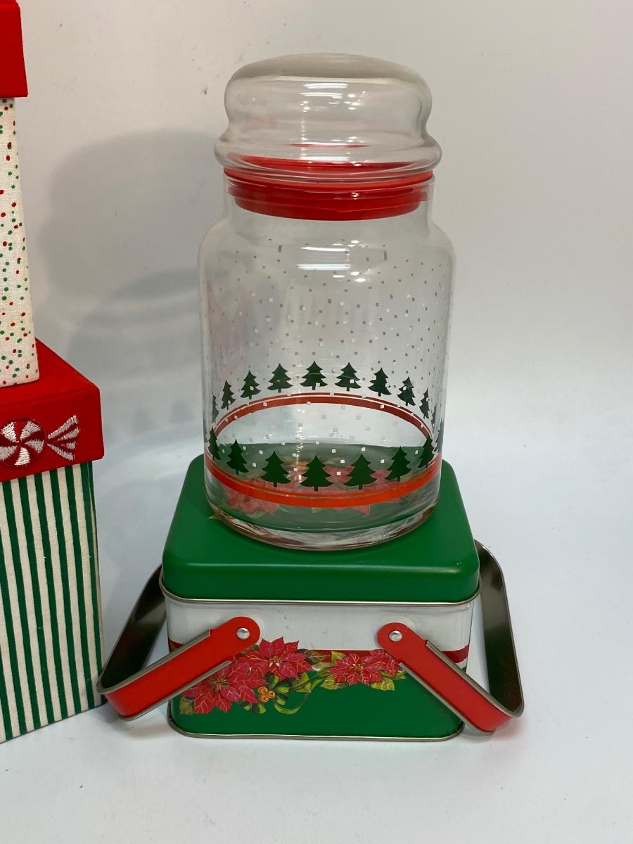 Christmas Holiday Seasonal Box Set Tin & Glass Canister Jar