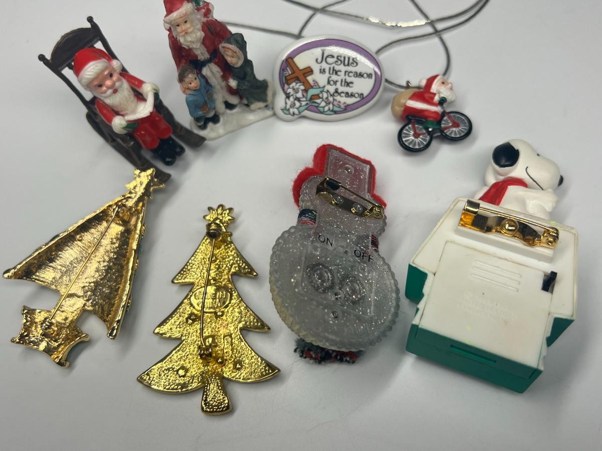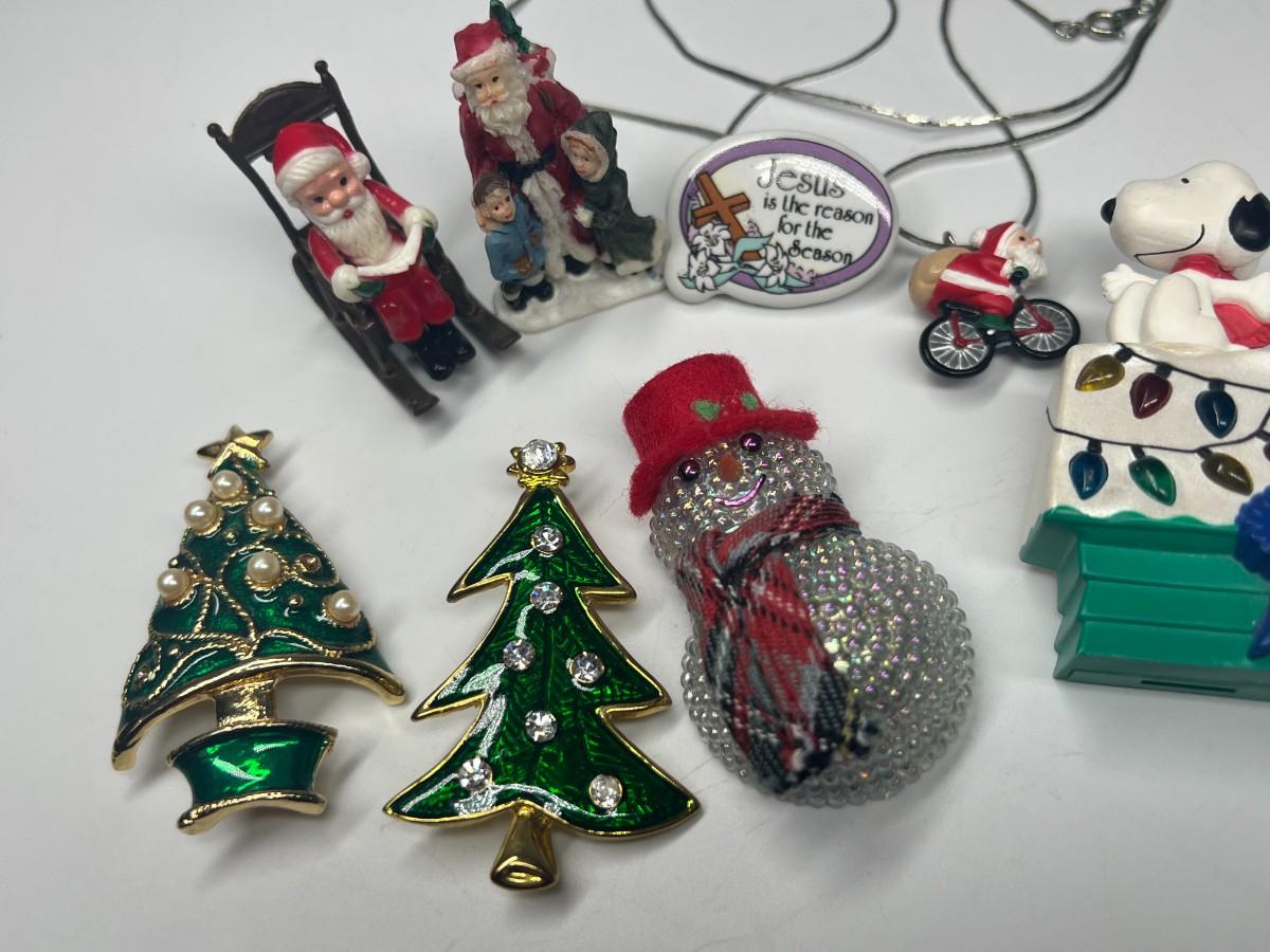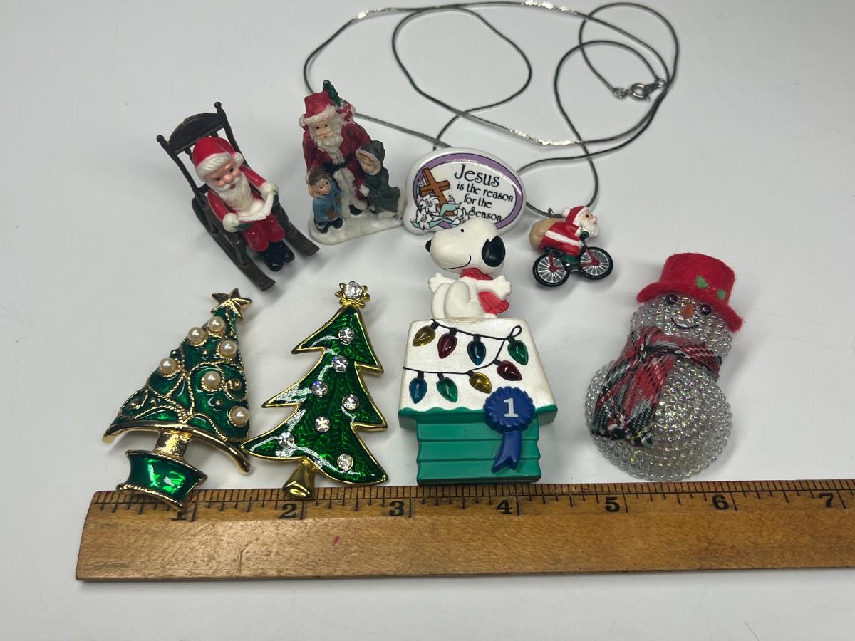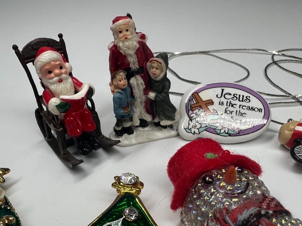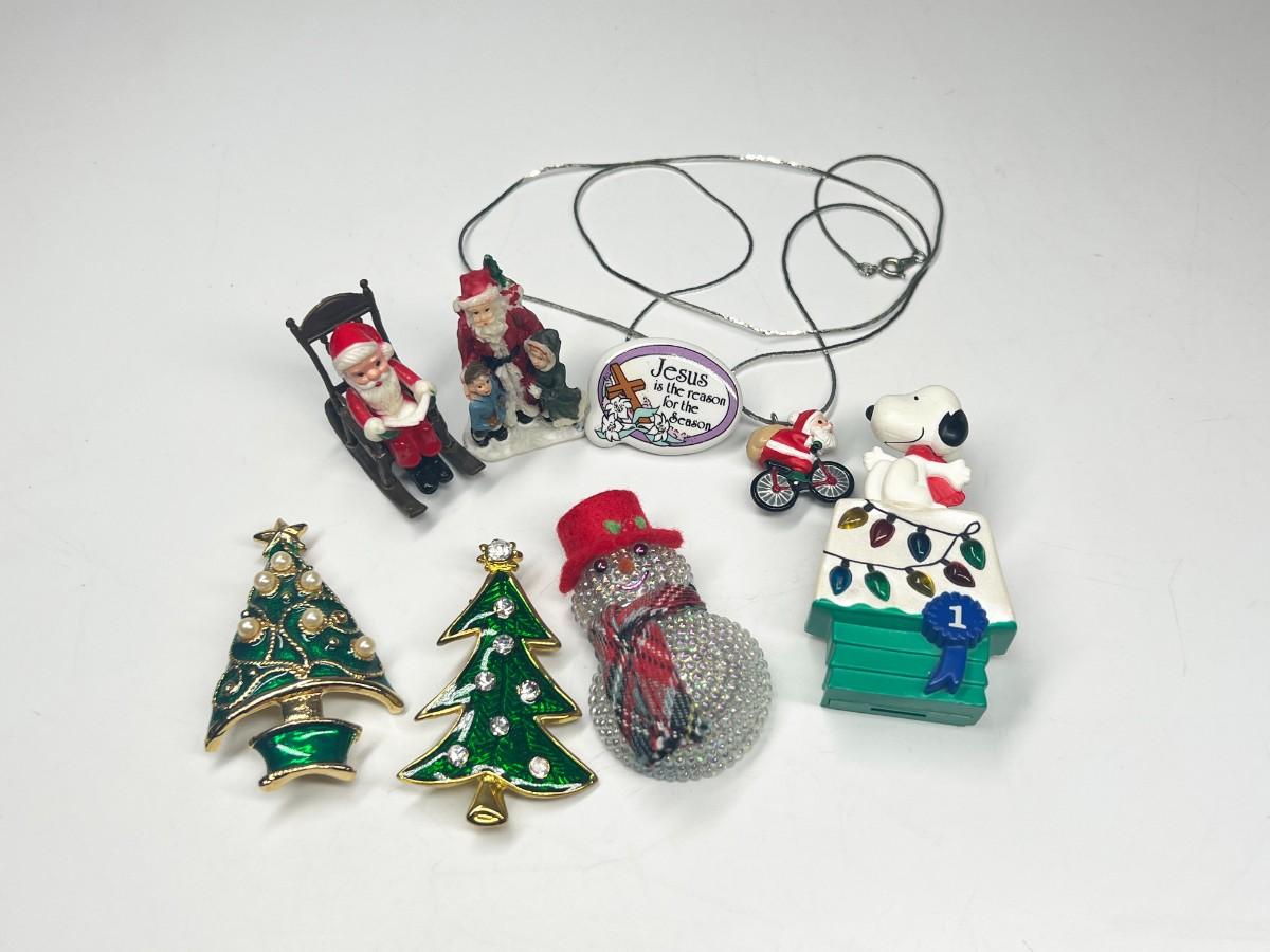 Christmas Holiday Seasonal Pins Pendants Jewelry and Miniatures. Everything in good condition, under 3" size.