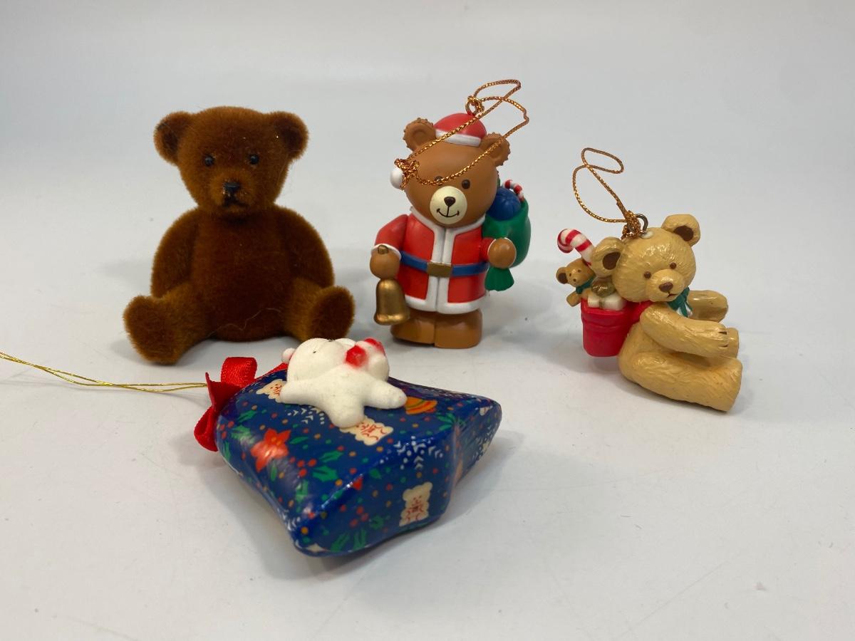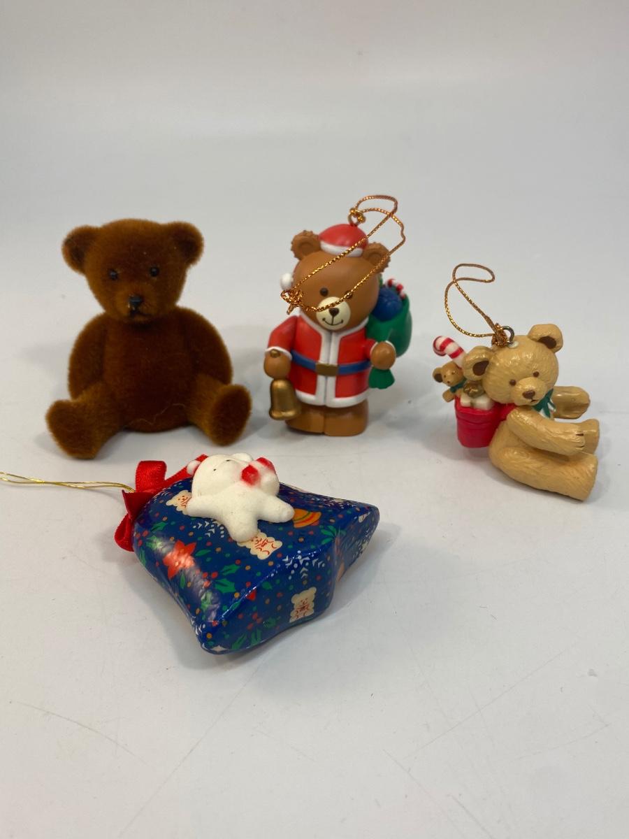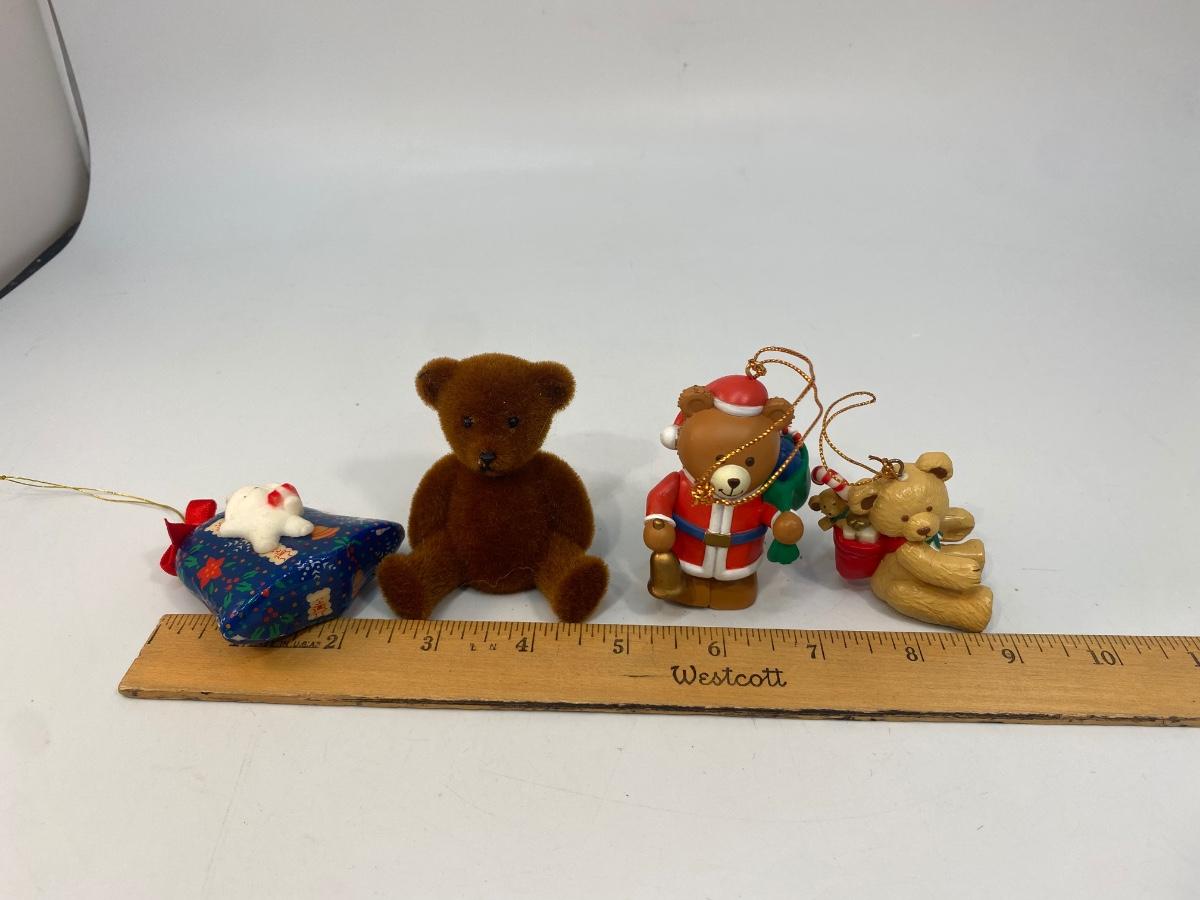 Christmas Holiday Teddy Bear Ornament Figurines. Lot of 4.