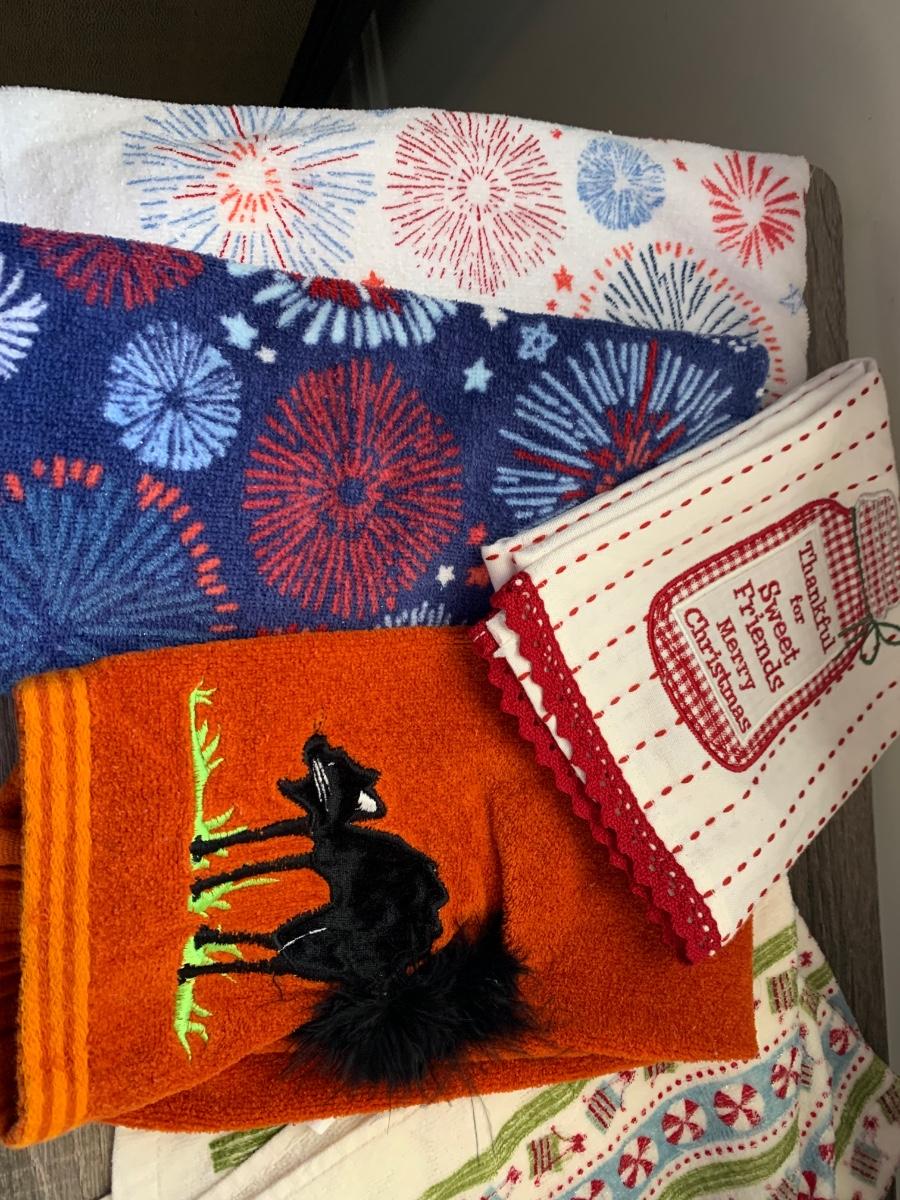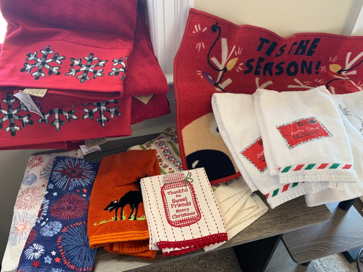 Christmas / Holiday Towel Lot - Large Size w/tags - Dish Towels - Door Mat