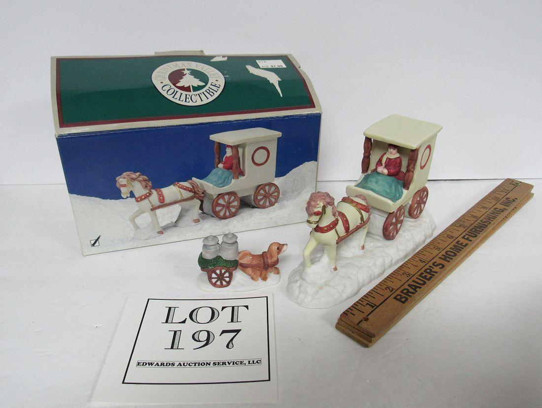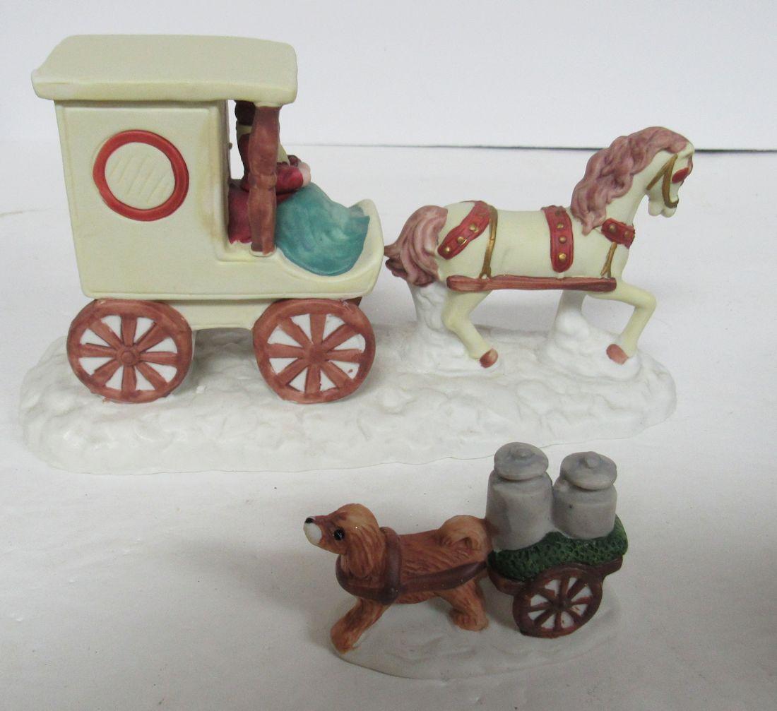 Christmas Horse and Buggy, Bisque, and Tiny Dog Cart, Bisque