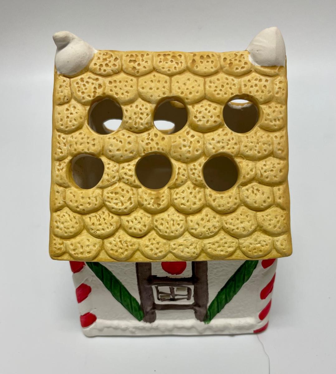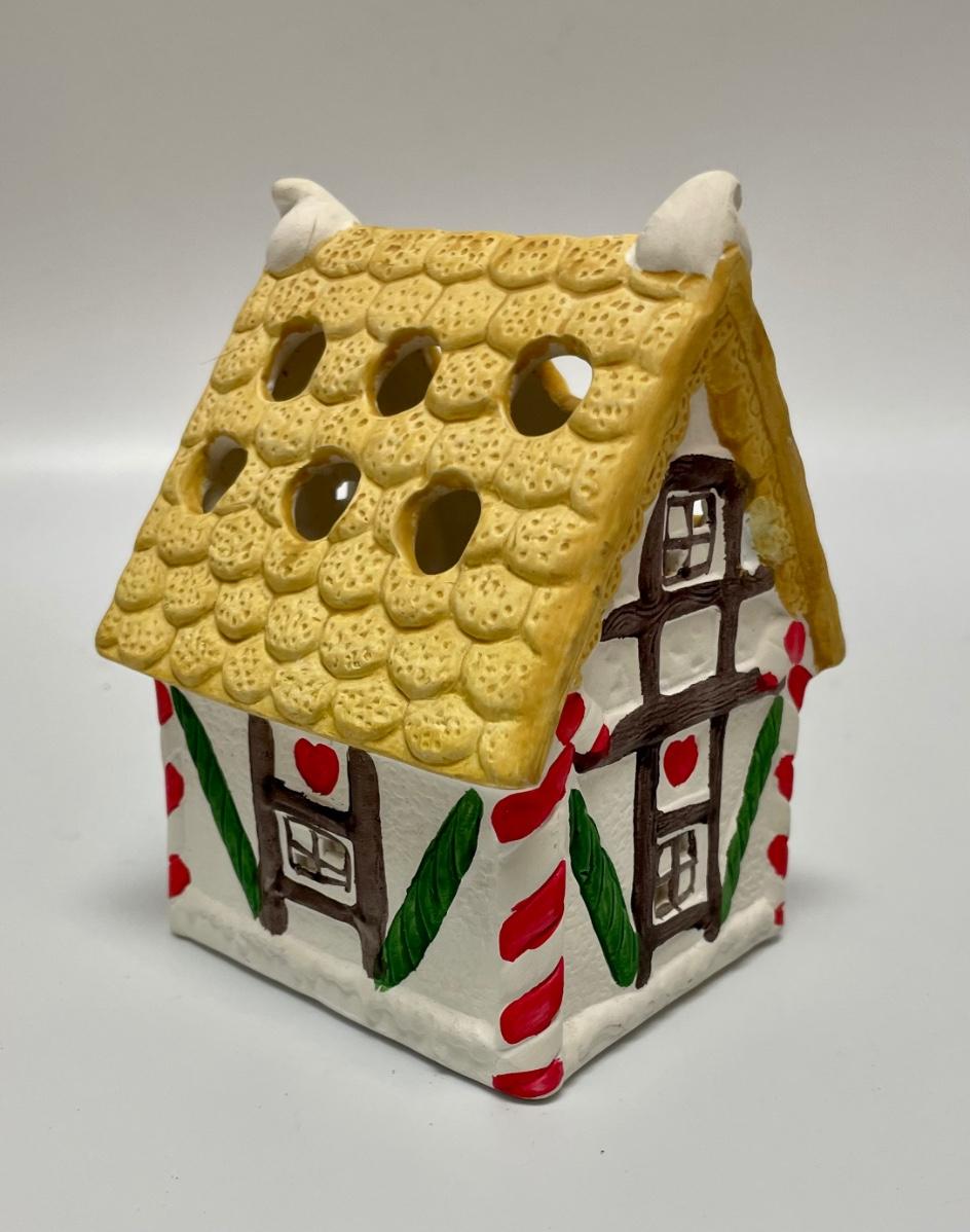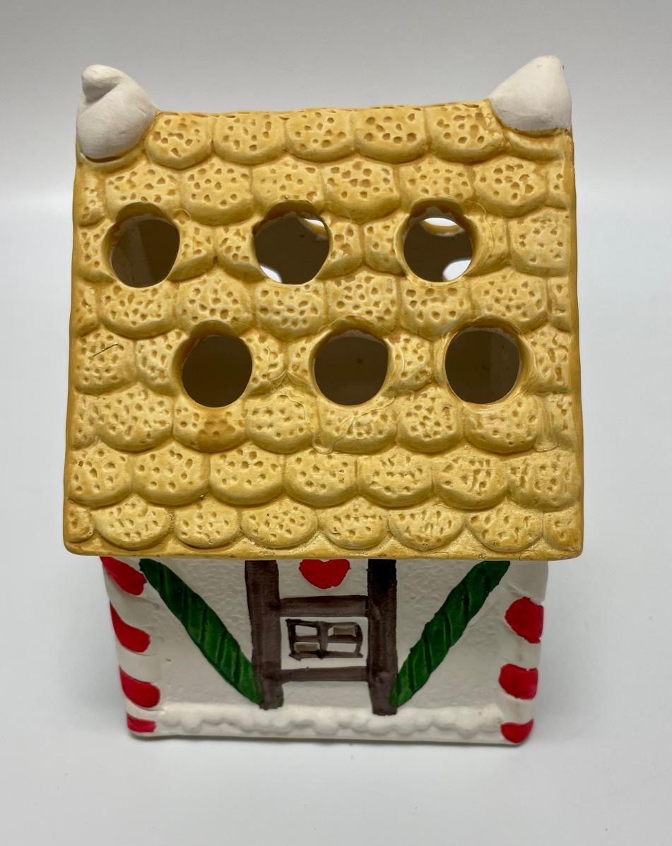 Ceramic house holds 12 candy canes. Made by House of Lloyd.