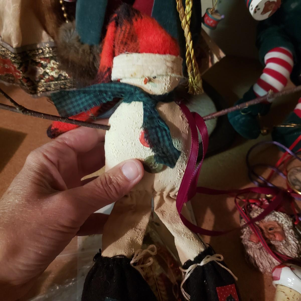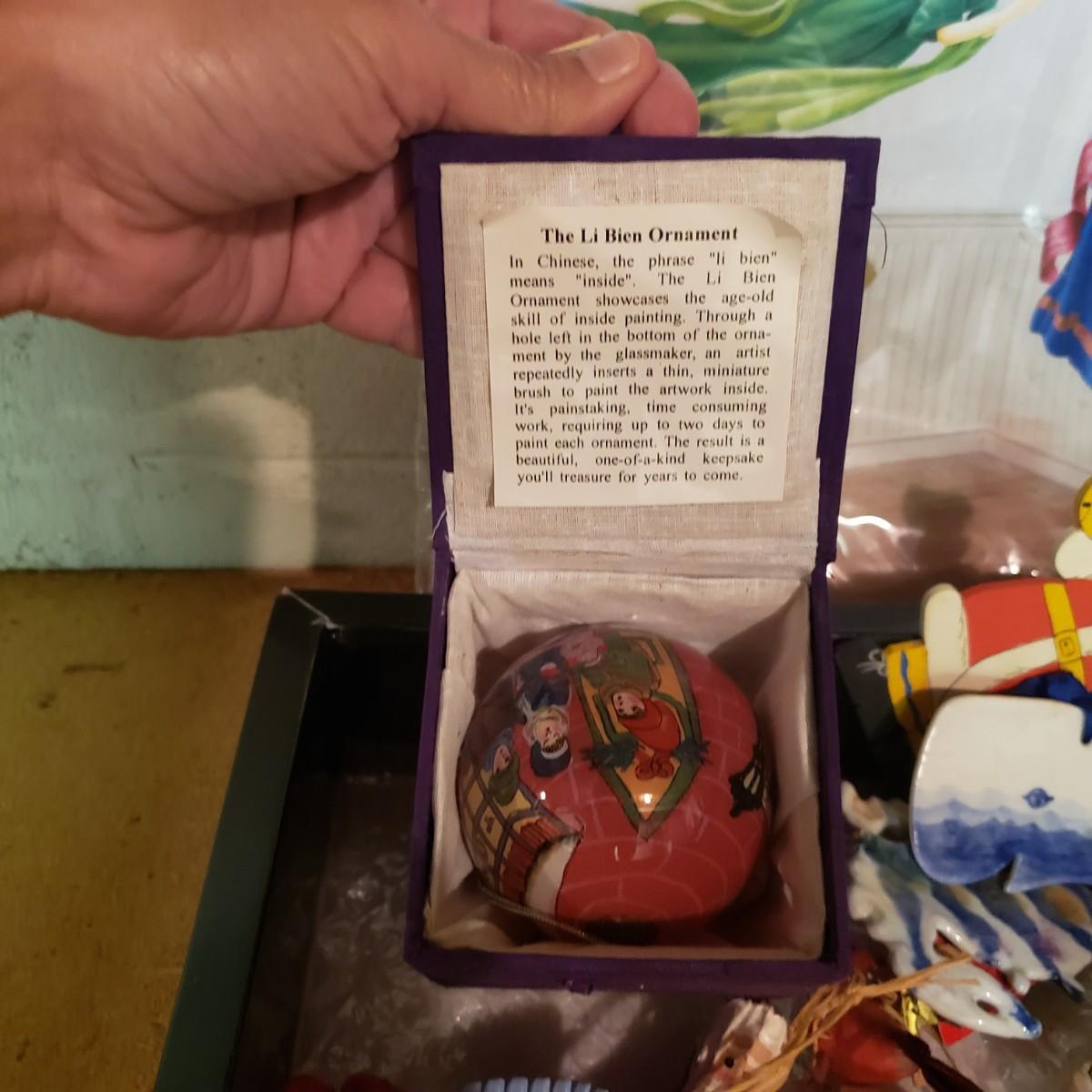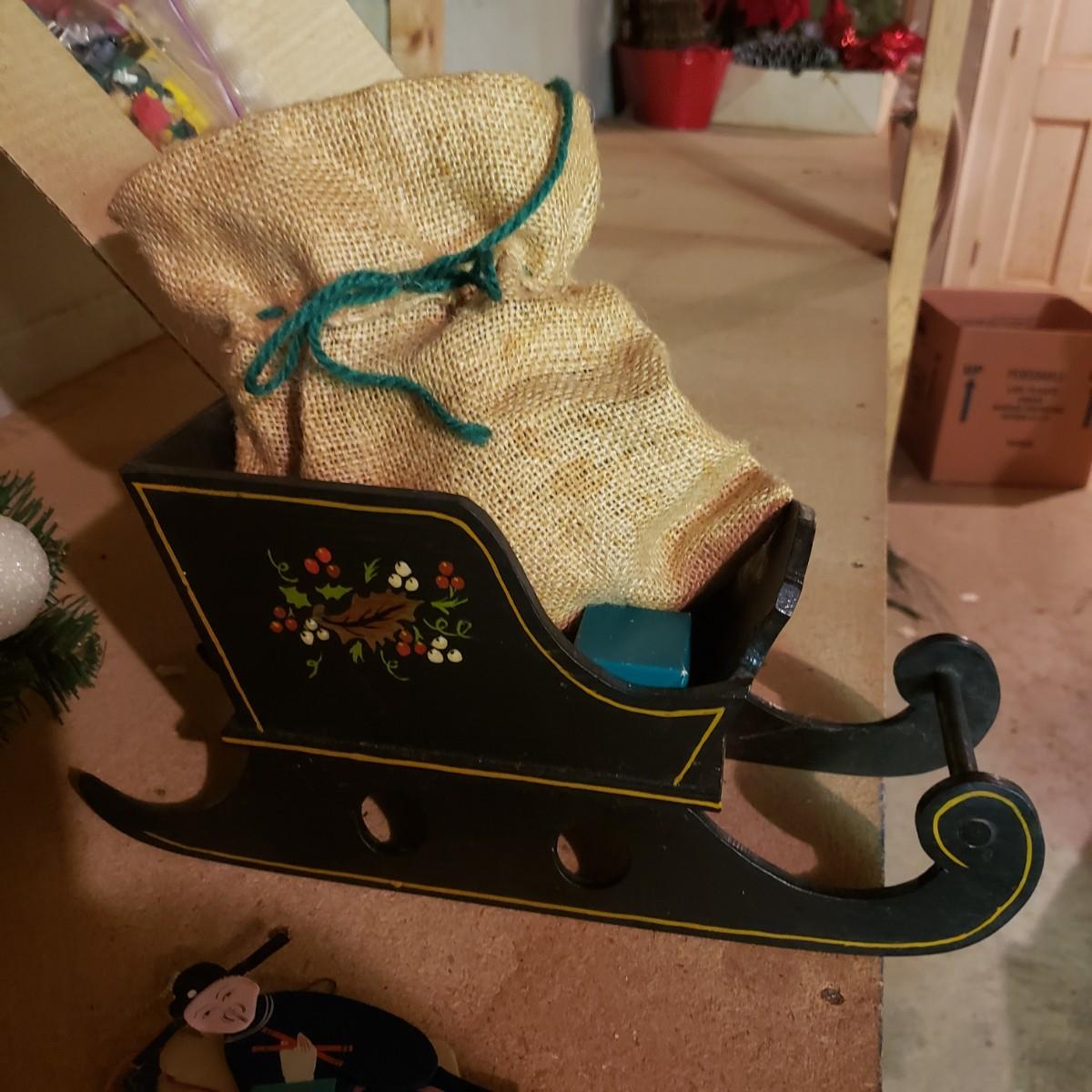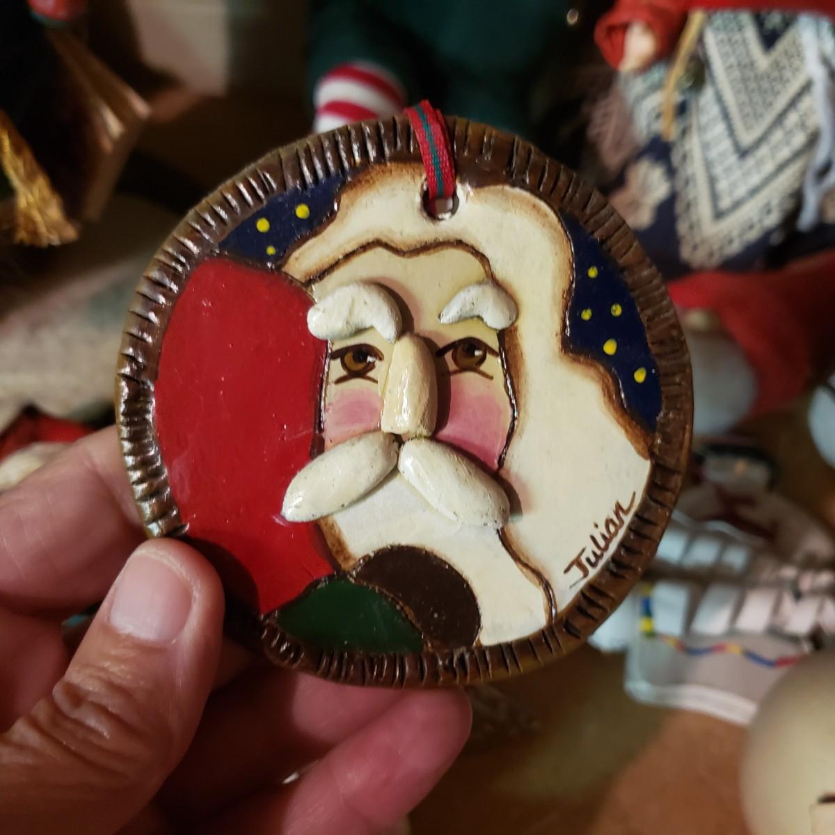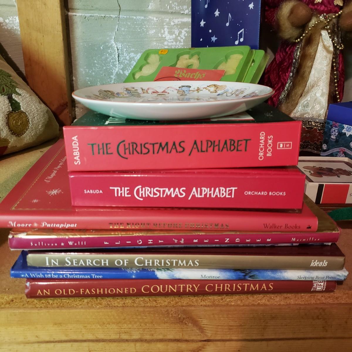 It's never too early for Christmas! There are unique ornaments, a brass snowflake (8") and reindeer (3" x 2") and a jingle bell wreath to ring off the celebration. The standing Santa Cat and the other two vintage old style Santas measure approximately 5" x 13"H. There are two wax ornaments from Germany still in the original boxes. The birdhouse has brilliant colors and such details. The stack of children's Christmas books are in great shape. This lot only pertains to the items on the one shelf, nothing below on the bottom shelf. Please see photos for inventory.