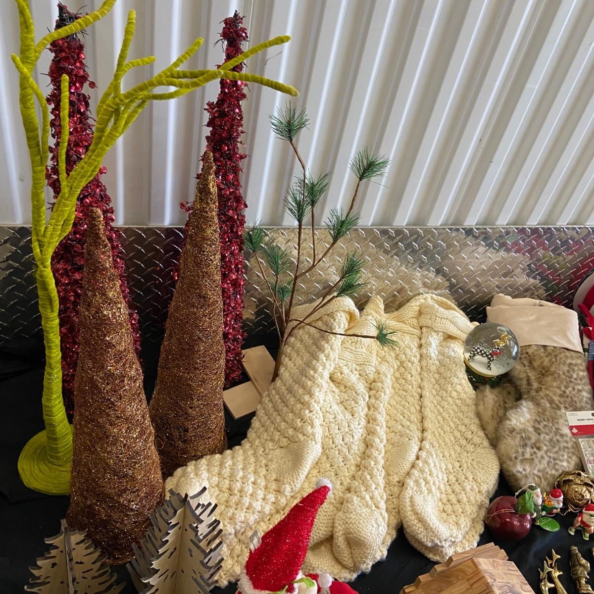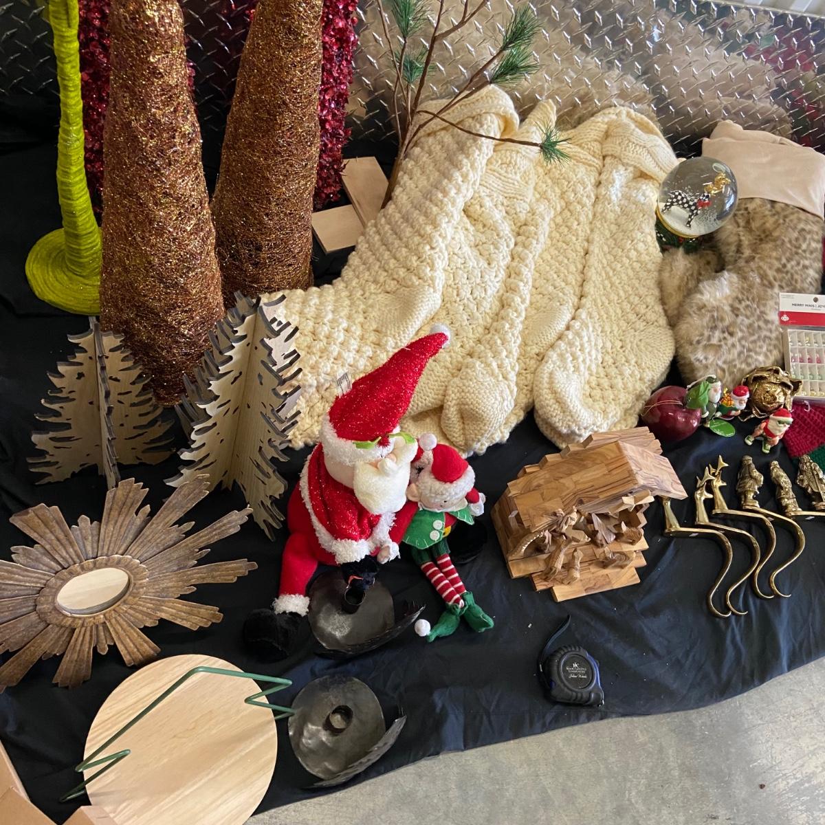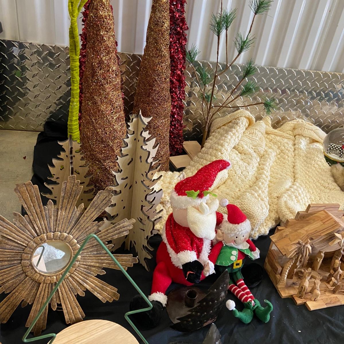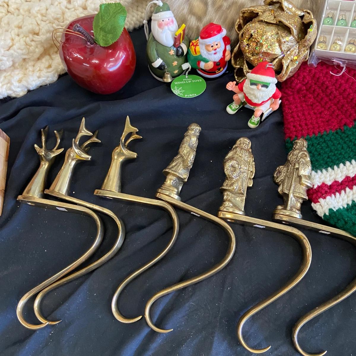 This is a massive Christmas lot!! Some of the highlights of this haul are two massive and stunning “Mackenzie Childs” wooden nut crackers both of which are 36” tall and are heavy! Another highlight is a wooden hand-carved nativity scene and this measure 8” x 5.5” x 7”H. The "floor" of the set has come unglued, see pictures. This lot also has six brass stocking holders made by Jefferson in India, three with Santa and three with reindeers on them. Some other items in this lot are a variety of stockings that total 17 (see pictures for styles), a variety of decorative trees, a variety of different stuffed Santa’s, elves and friends; a snow-globe, a metal star tree topper, tree base, LED lights, ornaments and more. See pictures for details. Local pick up only.