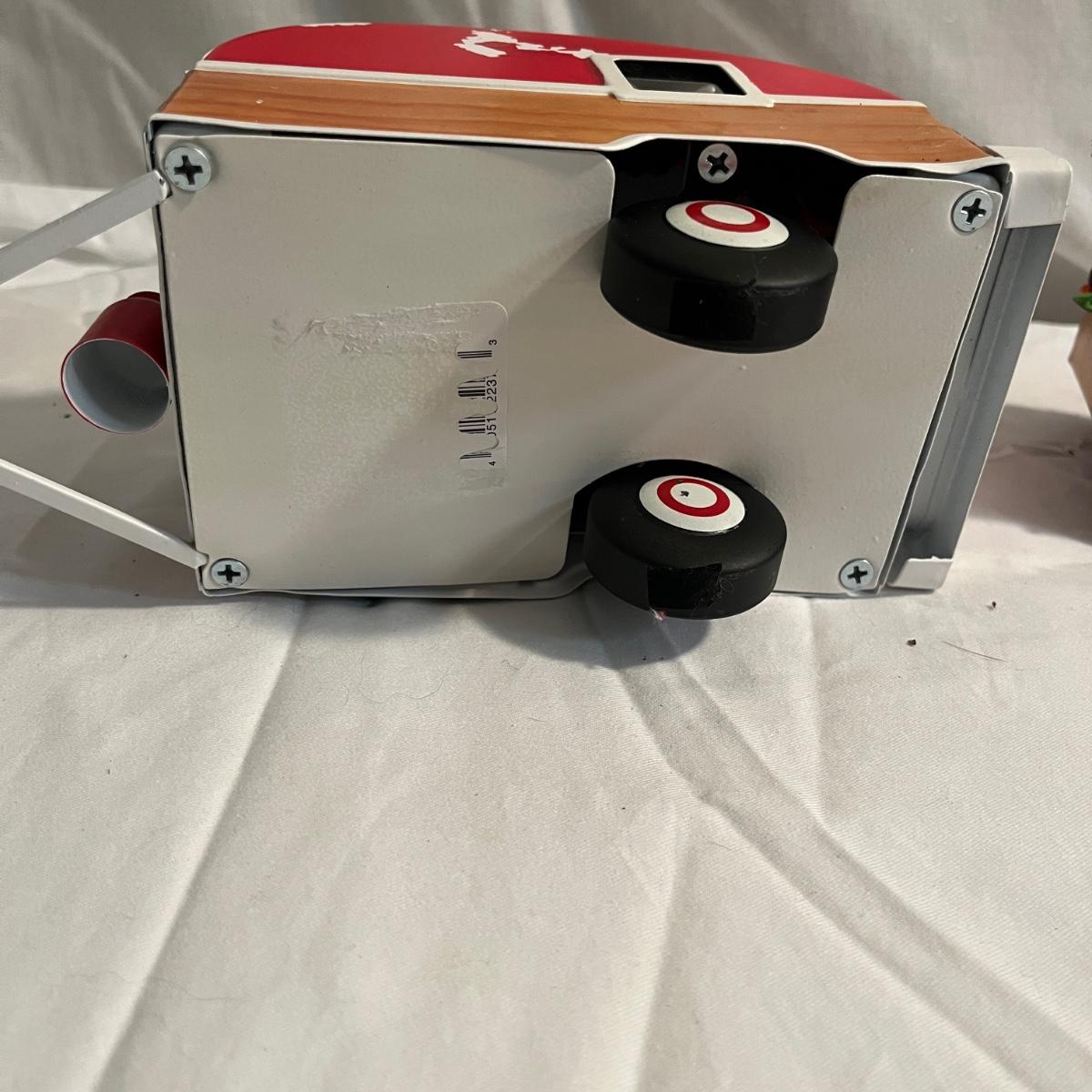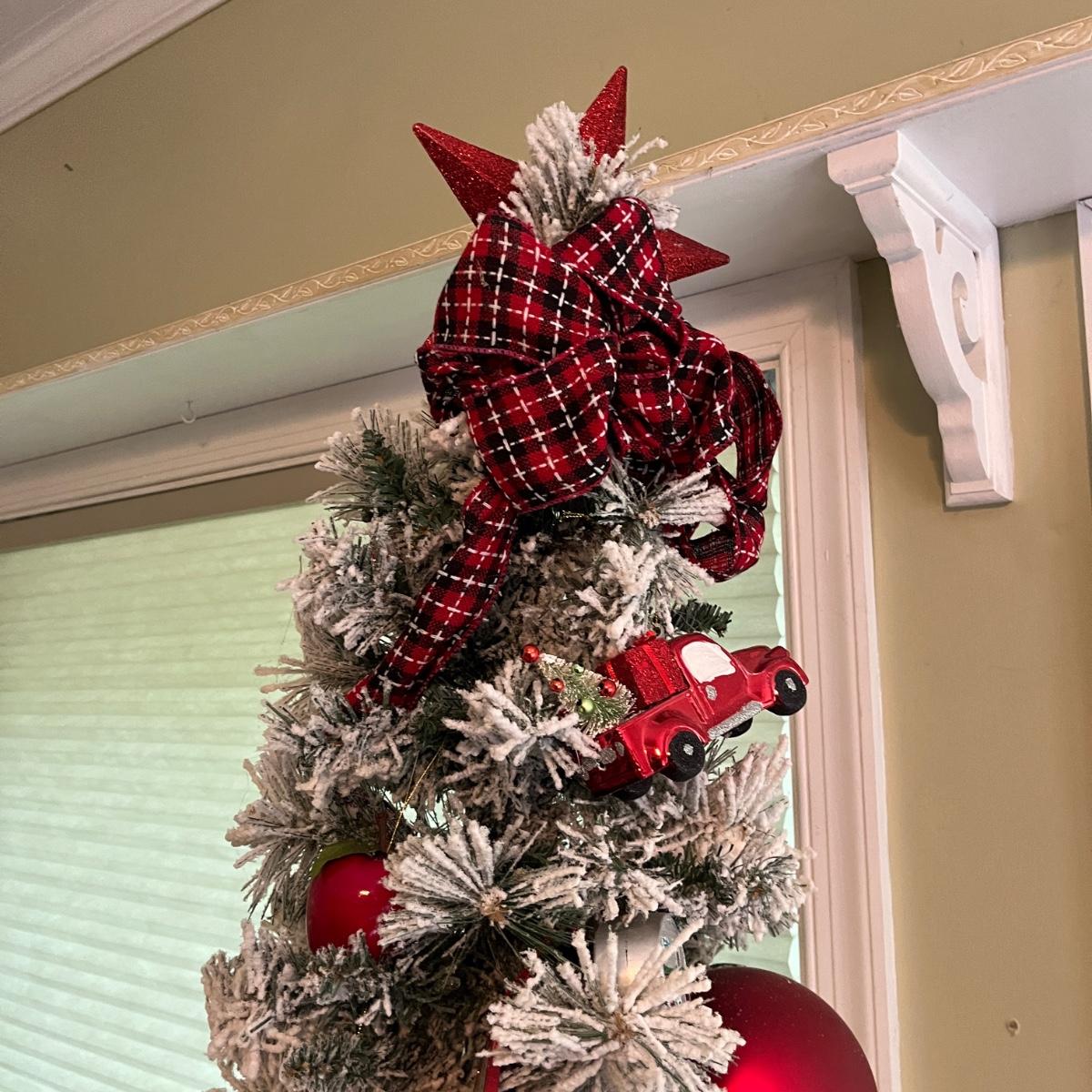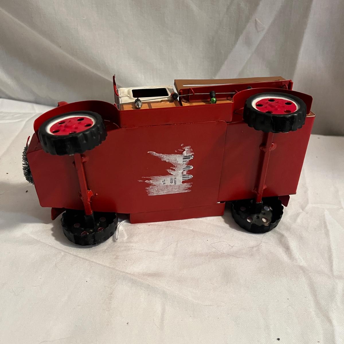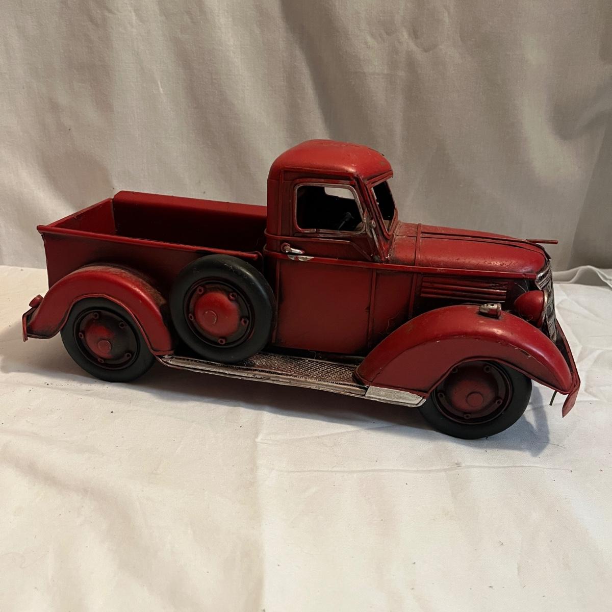 This large Christmas lot contains a lighted tree, table runner, metal trucks and campers, plates, tree skirt, plastic plate and more. Tree measures 24”D x 86”H. Tree lit up when plugged in. The tree separates at the top, making the top piece 27” and the bottom piece(s) 59”. It is likely to separate further, but we were unable because of its garland and lights.