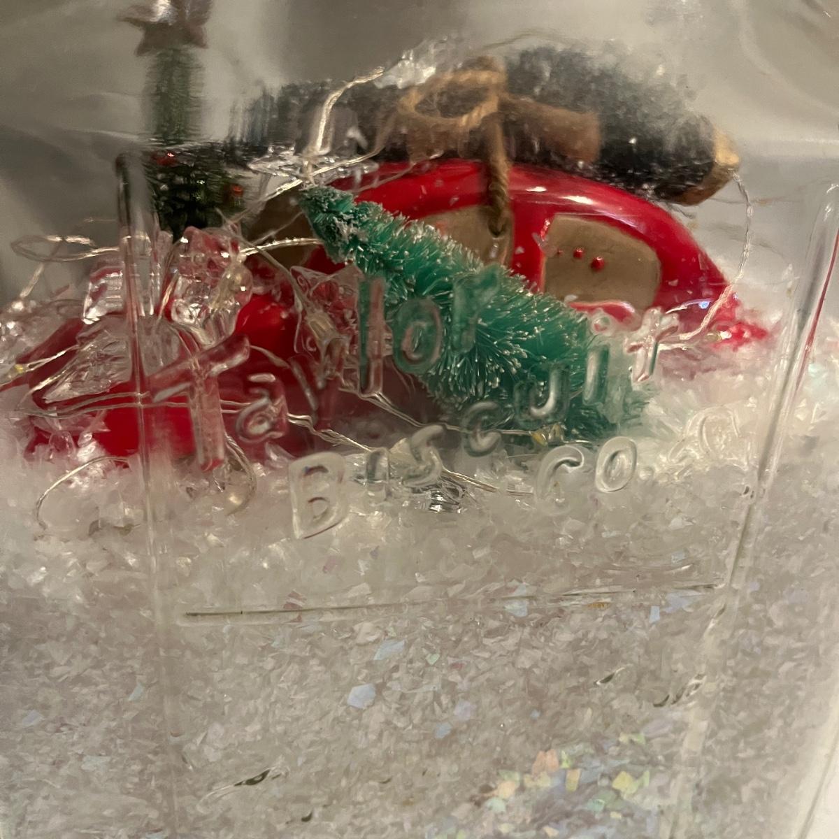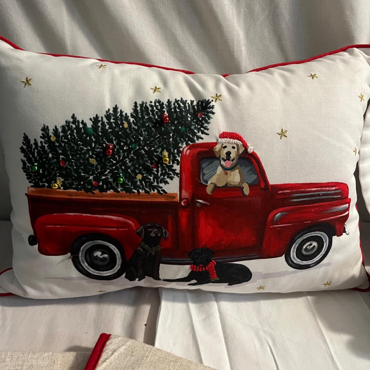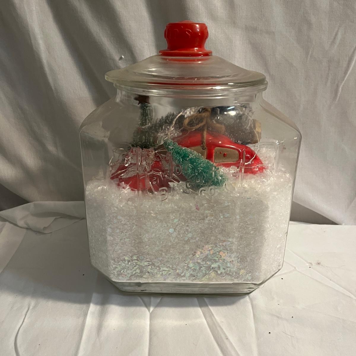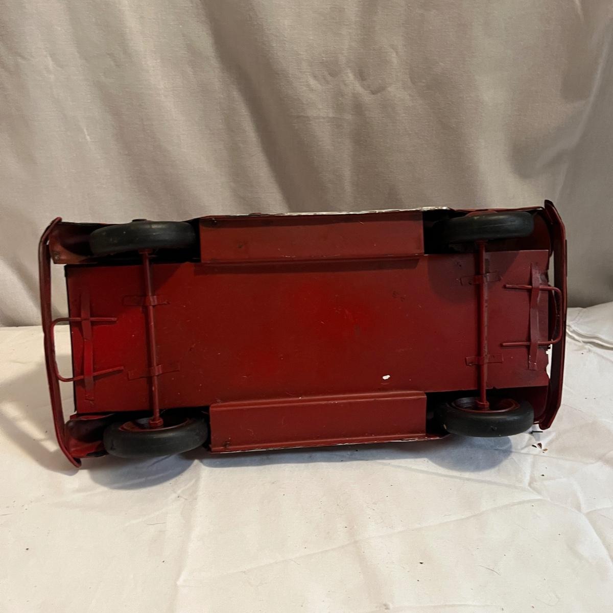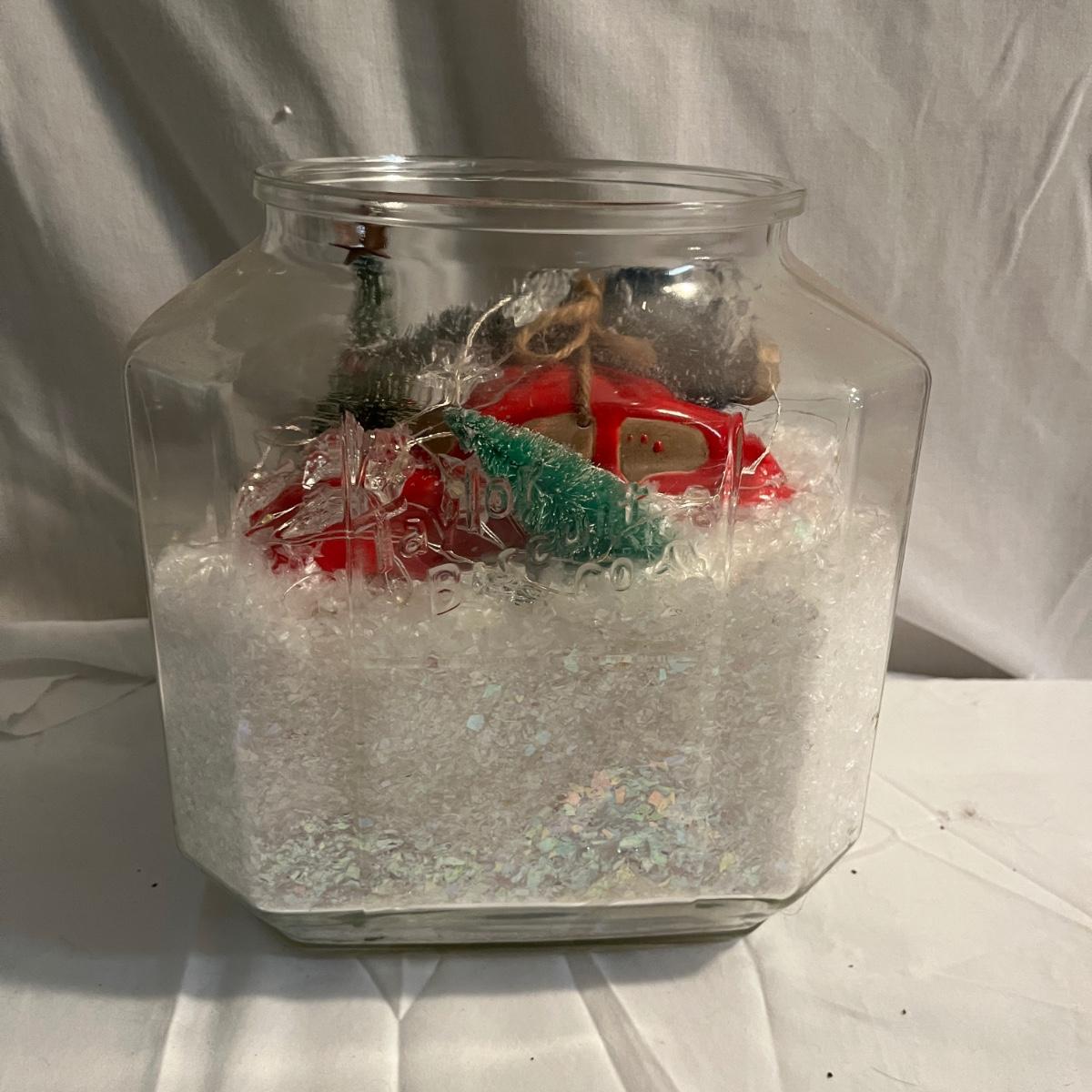 This large Christmas lot contains a lighted tree, table runner, metal trucks and campers, plates, tree skirt, plastic plate and more. Tree measures 24”D x 86”H. Tree lit up when plugged in. The tree separates at the top, making the top piece 27” and the bottom piece(s) 59”. It is likely to separate further, but we were unable because of its garland and lights.