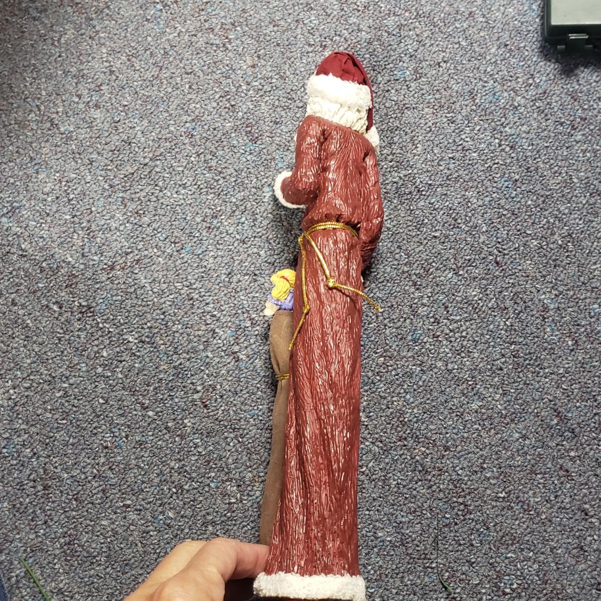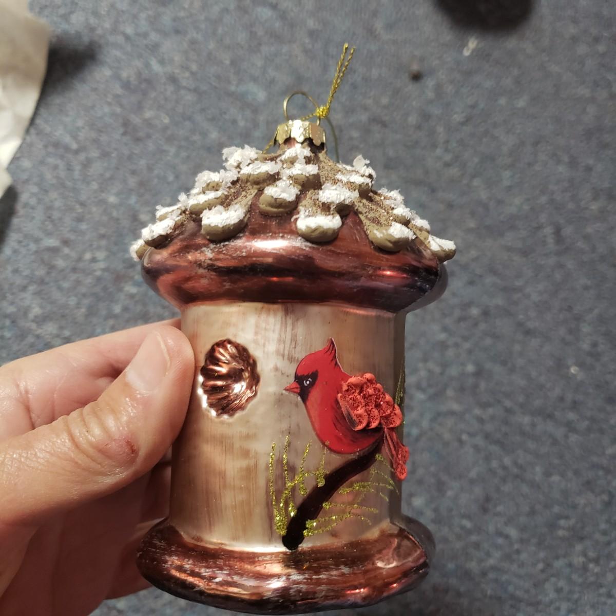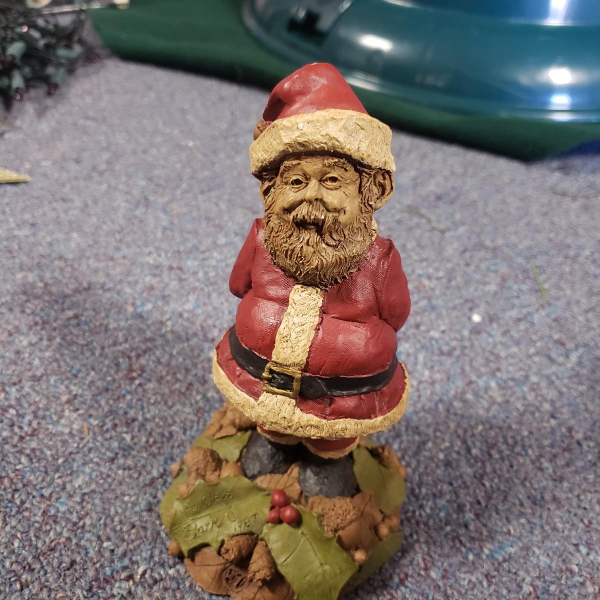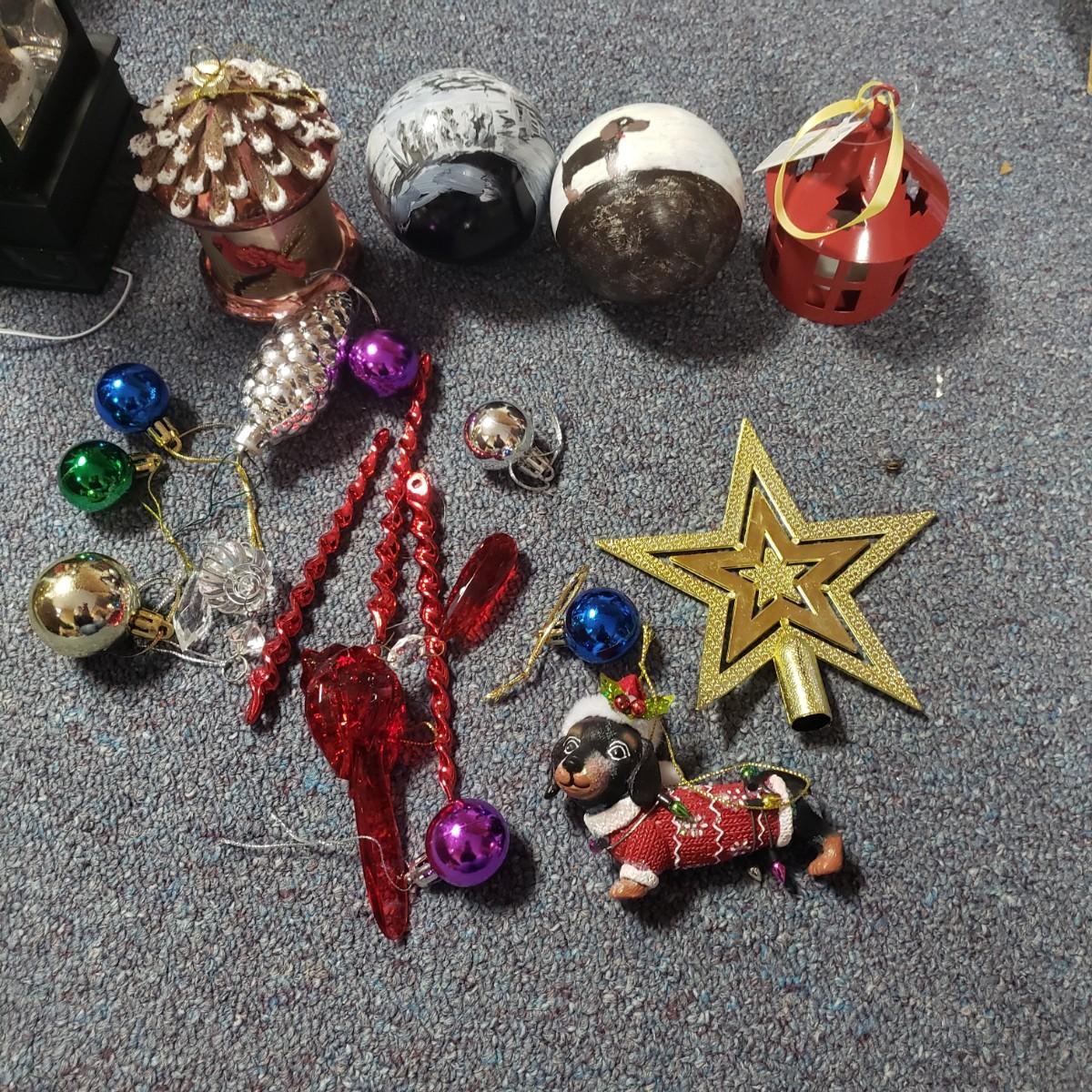 Christmas, just in time! This large Christmas lot features figurines, ornaments, lights, a tree stand and two small trees. All lights power on when plugged in, see pictures. The largest of the two trees measures 20" x 30"H. The tree is already stranded with red lights, plastic popcorn and cranberry garland. The purple coated Santa with children (4" x 8"H) is from the Santa Claus Shoppe and is a working music box. The Thomas Clark figurine is called "Mr. Claus" and measures 3" x 6"H. The tall angel figurine holding a silver star appears to be a resin material. The black metal cardinal snow globe lamp was not able to be tested with batteries, yet is still a beautiful piece to admire. The white frosted glass with winter trees lights up.