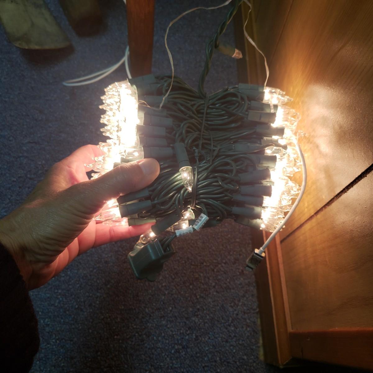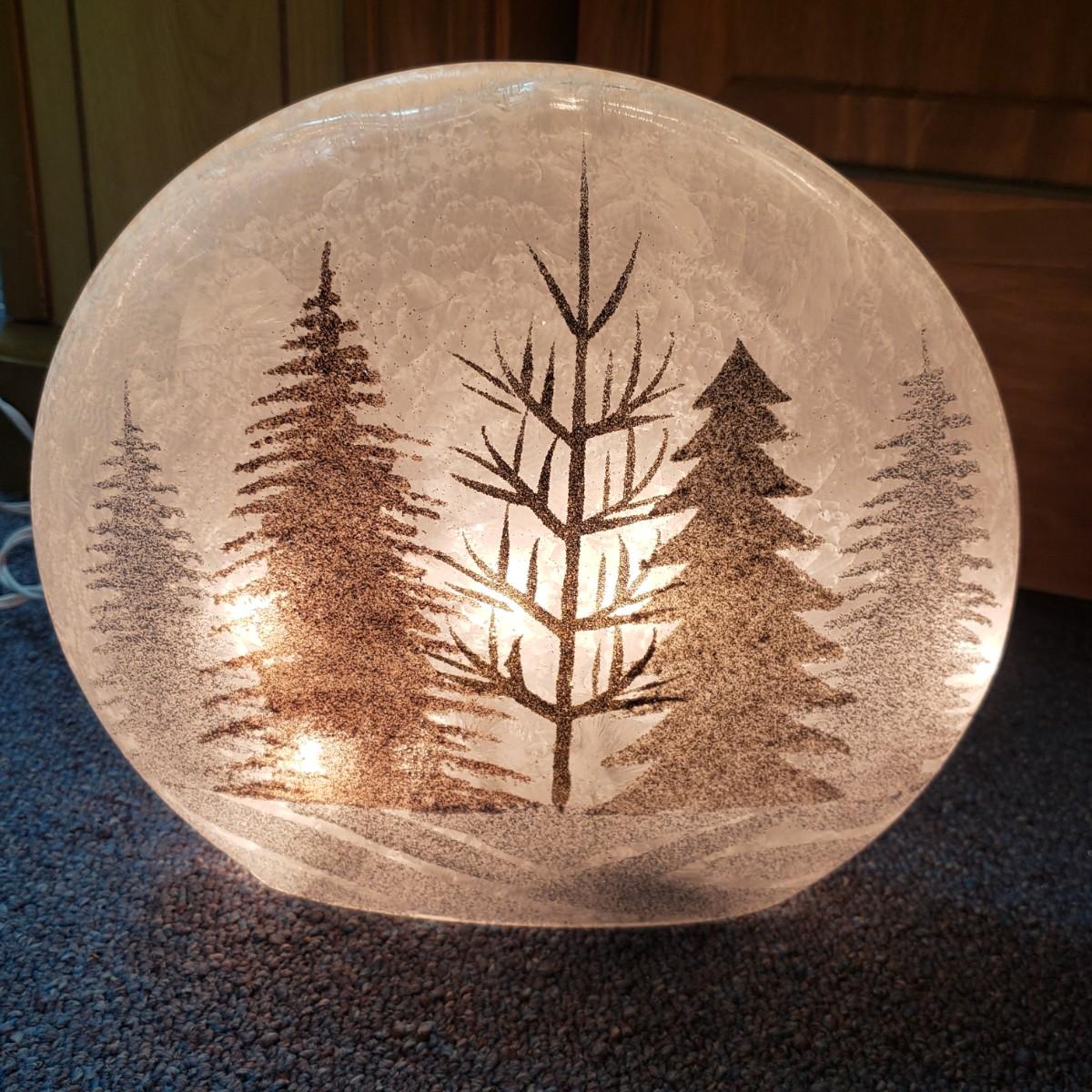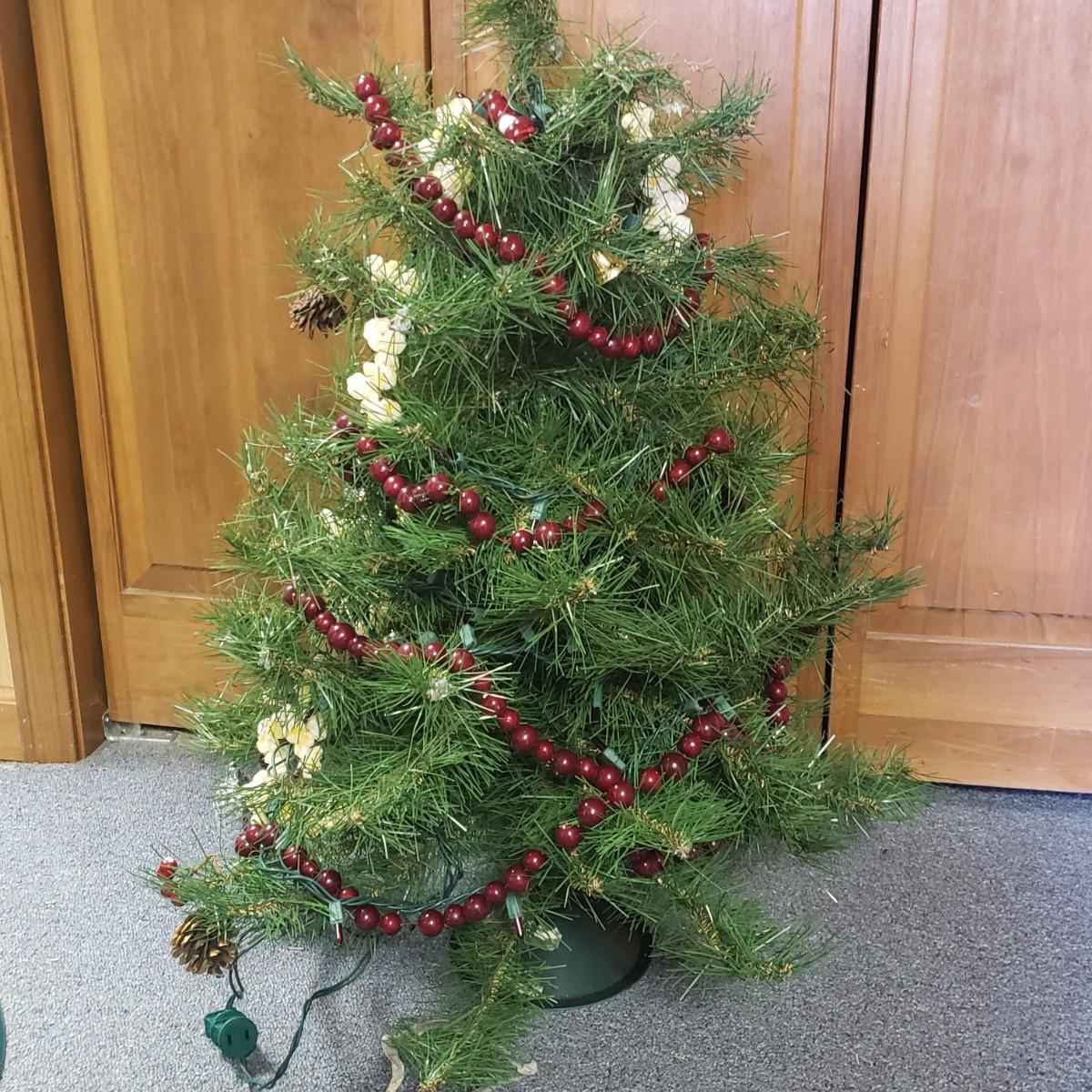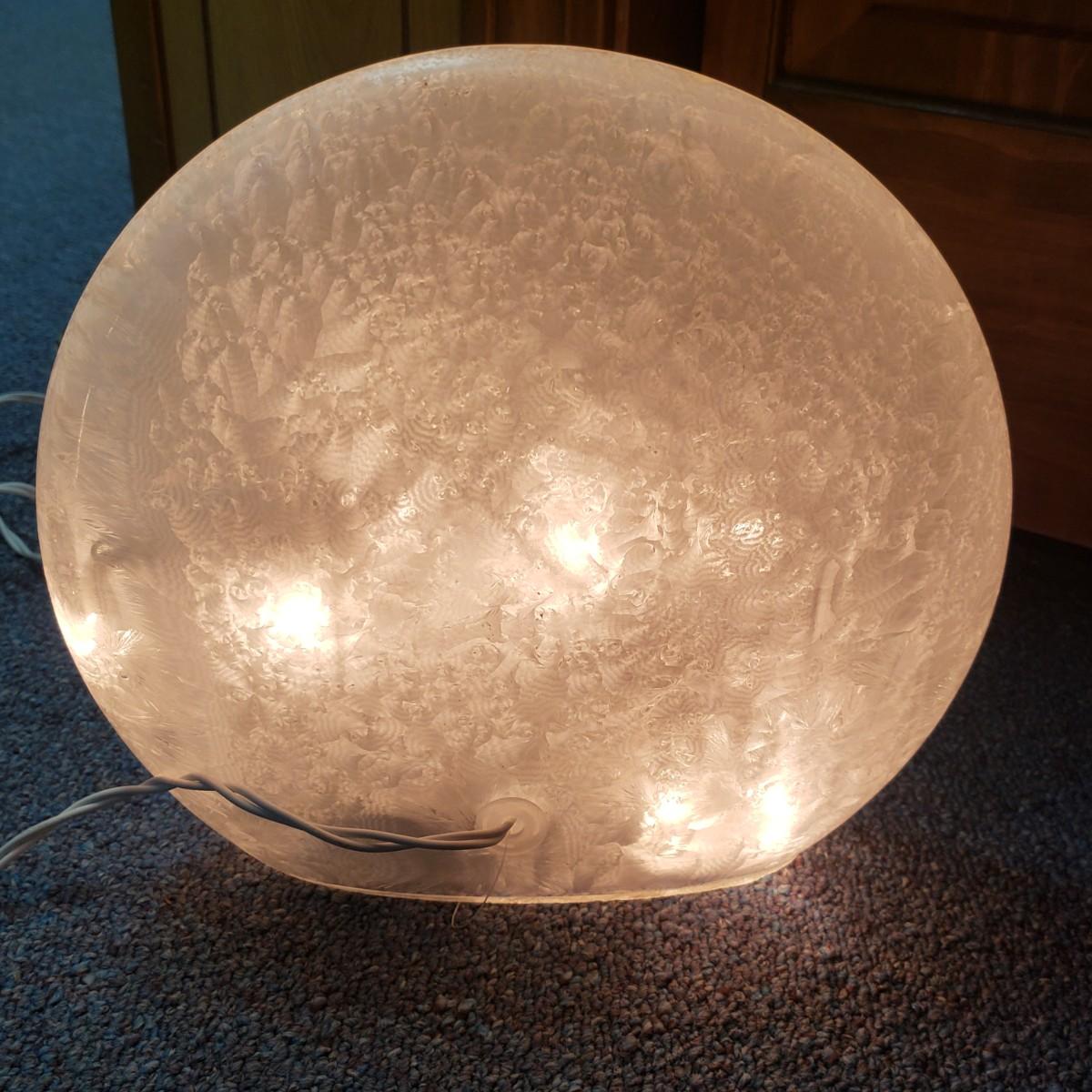 Christmas, just in time! This large Christmas lot features figurines, ornaments, lights, a tree stand and two small trees. All lights power on when plugged in, see pictures. The largest of the two trees measures 20" x 30"H. The tree is already stranded with red lights, plastic popcorn and cranberry garland. The purple coated Santa with children (4" x 8"H) is from the Santa Claus Shoppe and is a working music box. The Thomas Clark figurine is called "Mr. Claus" and measures 3" x 6"H. The tall angel figurine holding a silver star appears to be a resin material. The black metal cardinal snow globe lamp was not able to be tested with batteries, yet is still a beautiful piece to admire. The white frosted glass with winter trees lights up.