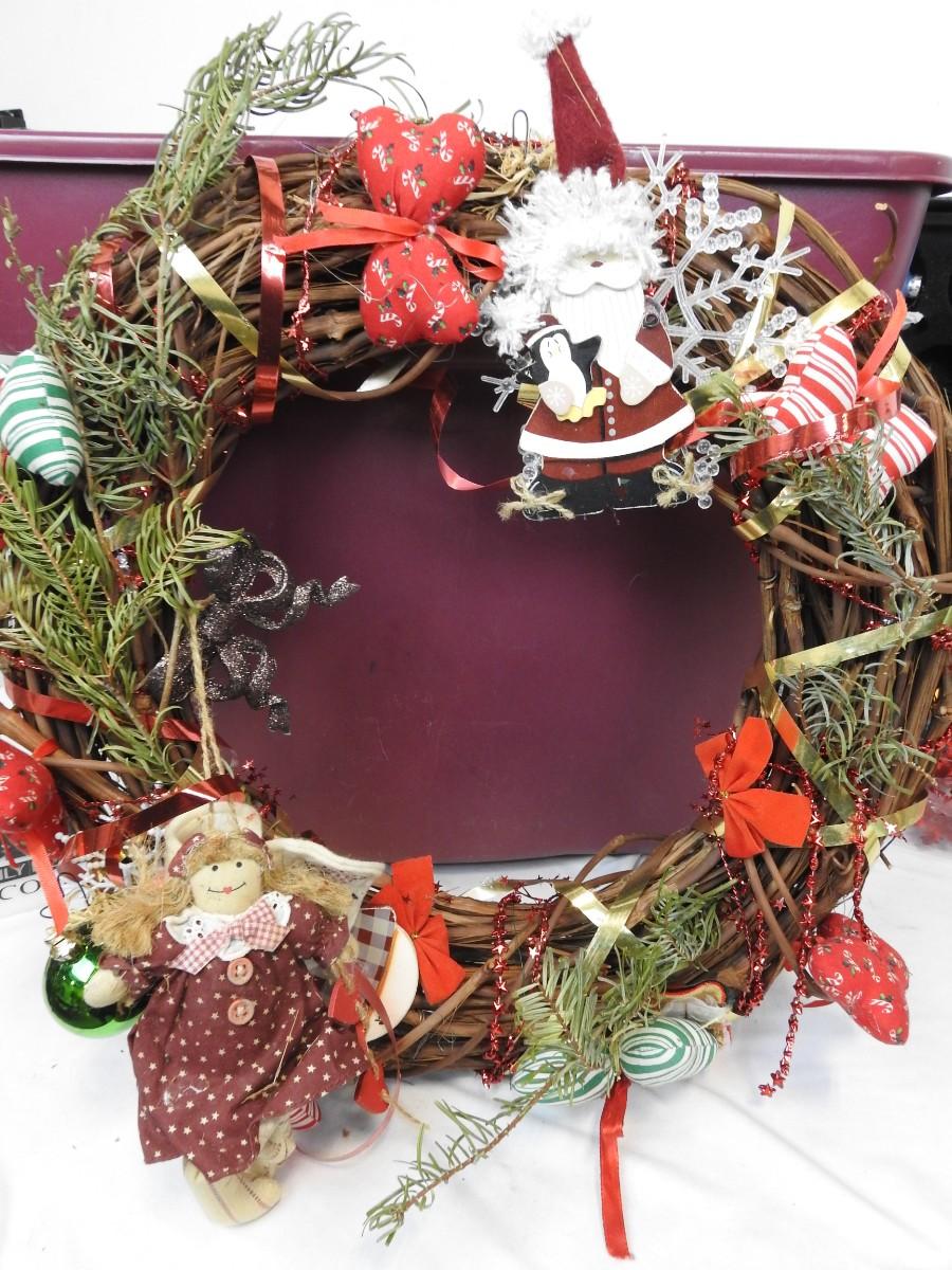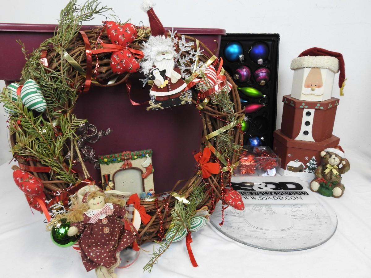 Christmas Items: 18in Wreath,Ornaments,Stacking Boxes,Bear Platter,Includes Tote