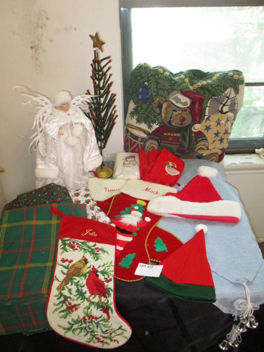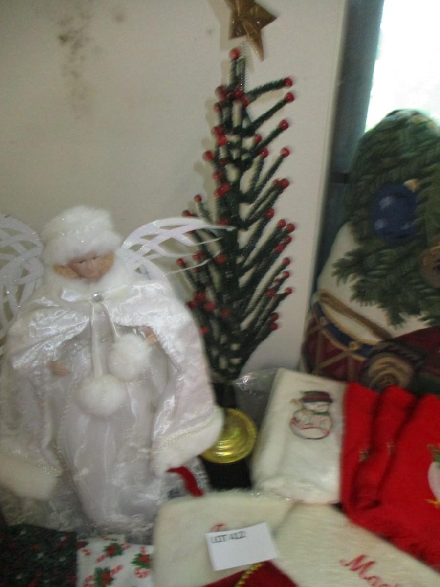 Stockings, Angel, Pillow, mini tree, tablecloth
