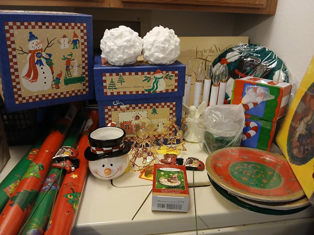 Christmas Items, new rolls of giftwrapping, candy cane deco, snowman boxes & more !