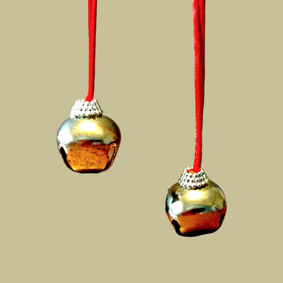 - 2 Brass/Red Jingle Bel Necklaces
