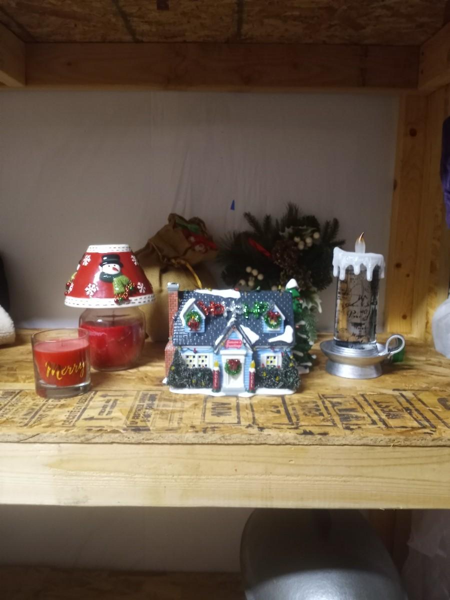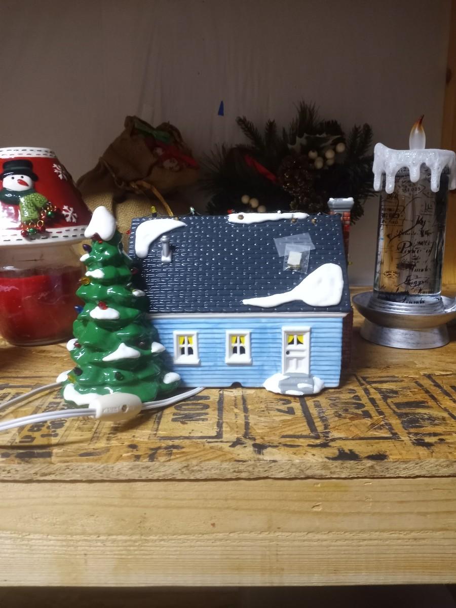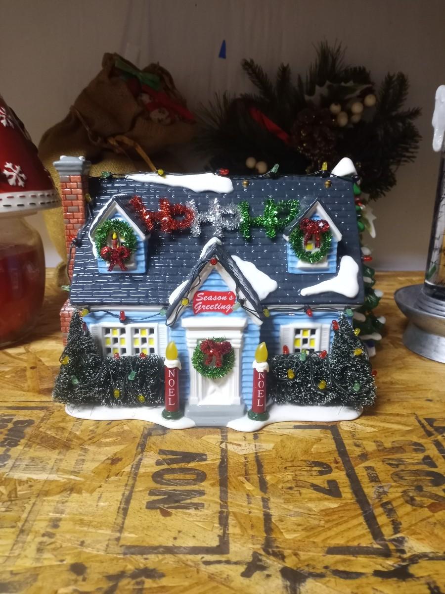 CHRISTMAS LIGHT UP HOUSE 10X9 -CANDLES AND SMALL WREATH