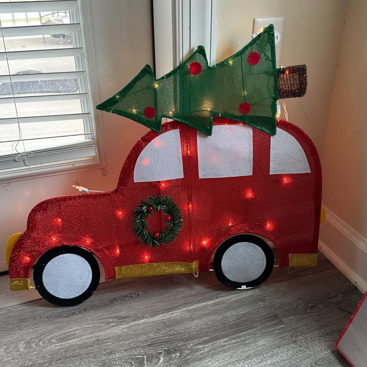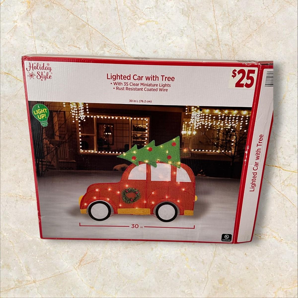 Christmas- Lighted Car with Tree Yard Decor; Tested/Works, all pieces included