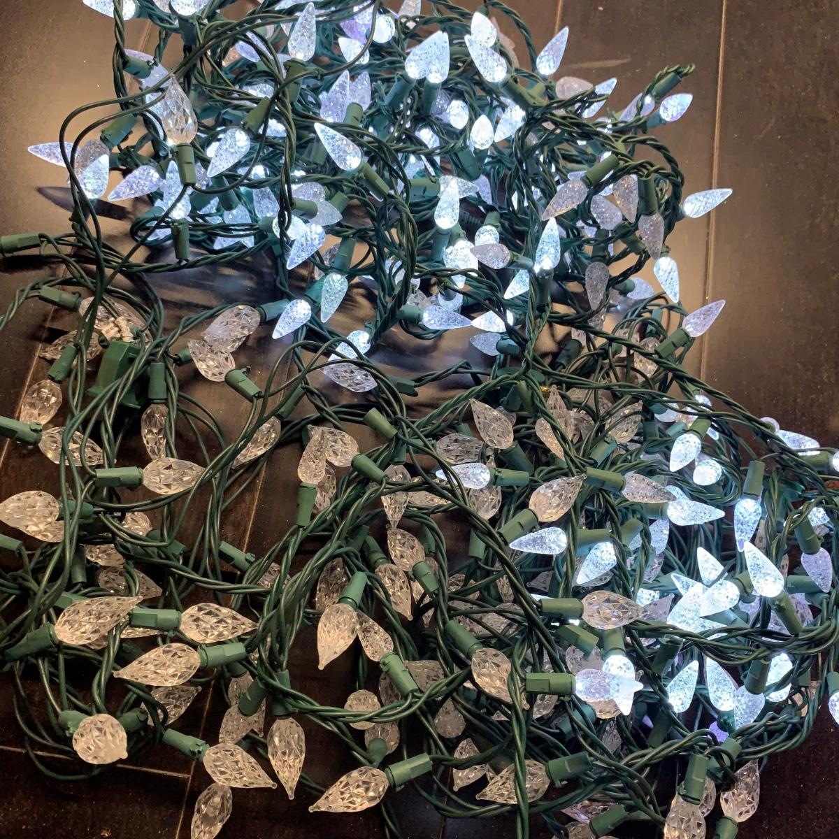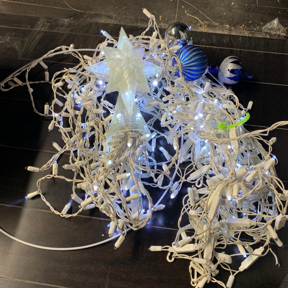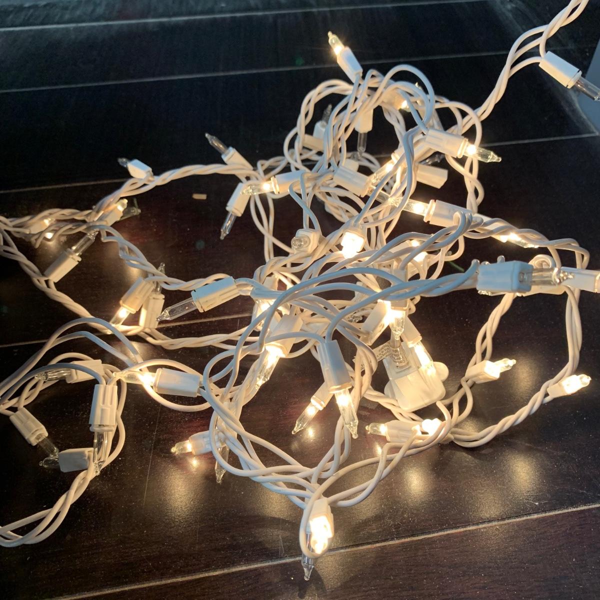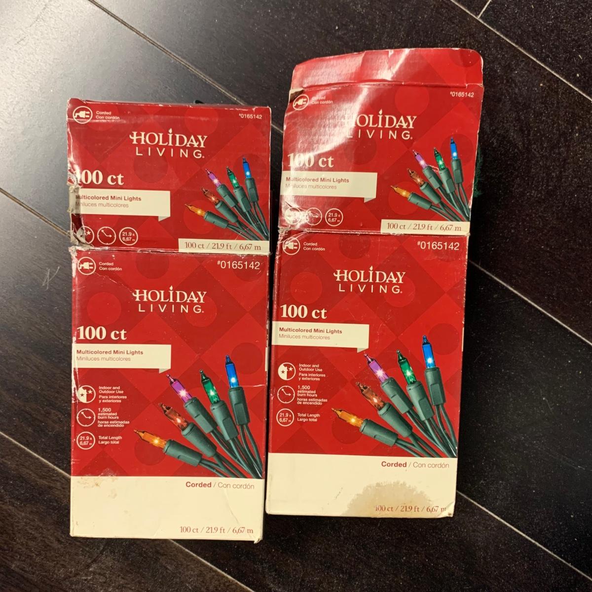 Many Christmas lights! There are five bins/boxes full of different types and lengths of lights. Some clear, some multi-colored, some green, some red. There are a couple sets of net lights and one large Christmas tree light structure. There are probably 40+ strands of lights. All lights functioned when tested. Bins (no lids) are included. Local pickup only.