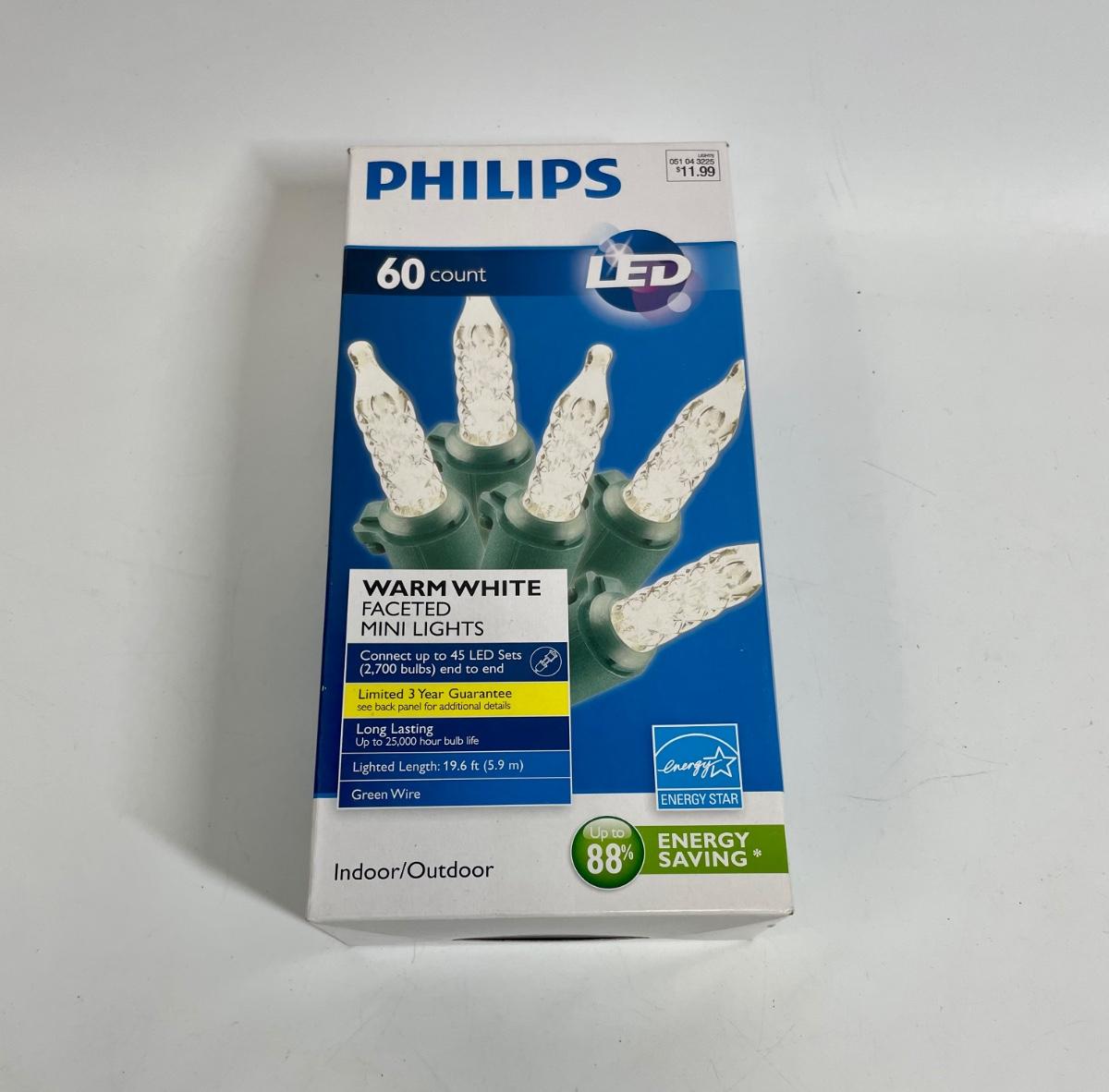 20 foot string of white Christmas lights by Philips. Set has 60 lights. Tested.