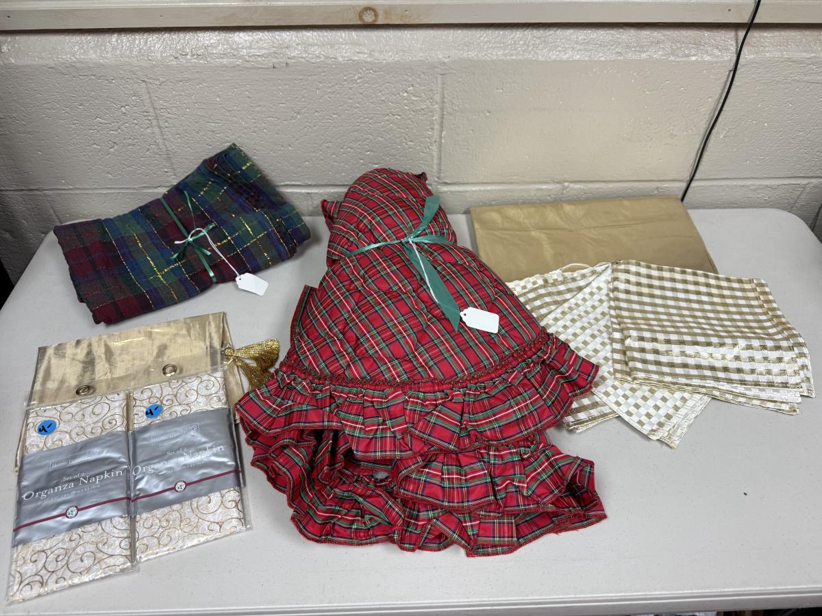 Handmade quilted Tree skirt, tablecloths, runner, napkins