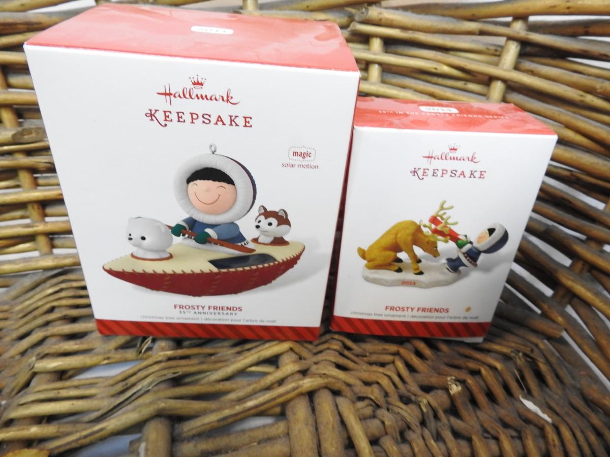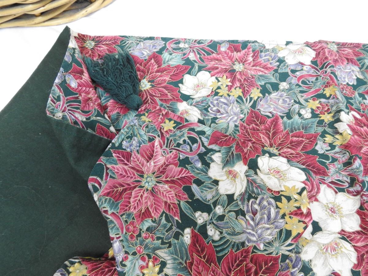 Christmas Lot: Basket w/Reindeer, Stacking Boxes, Table Runner, Ornaments, Tins