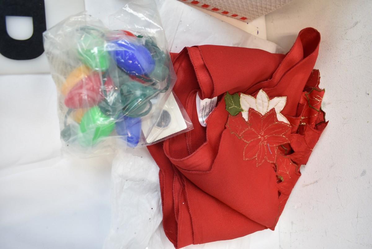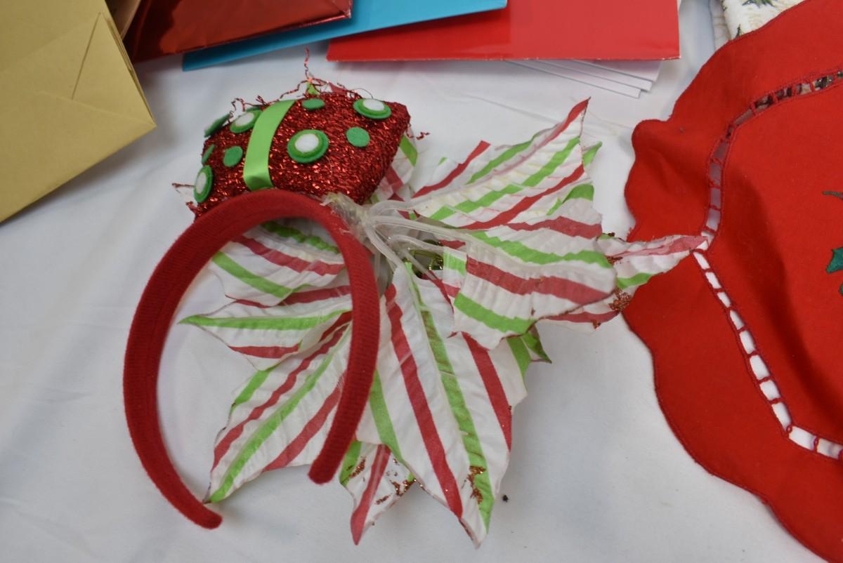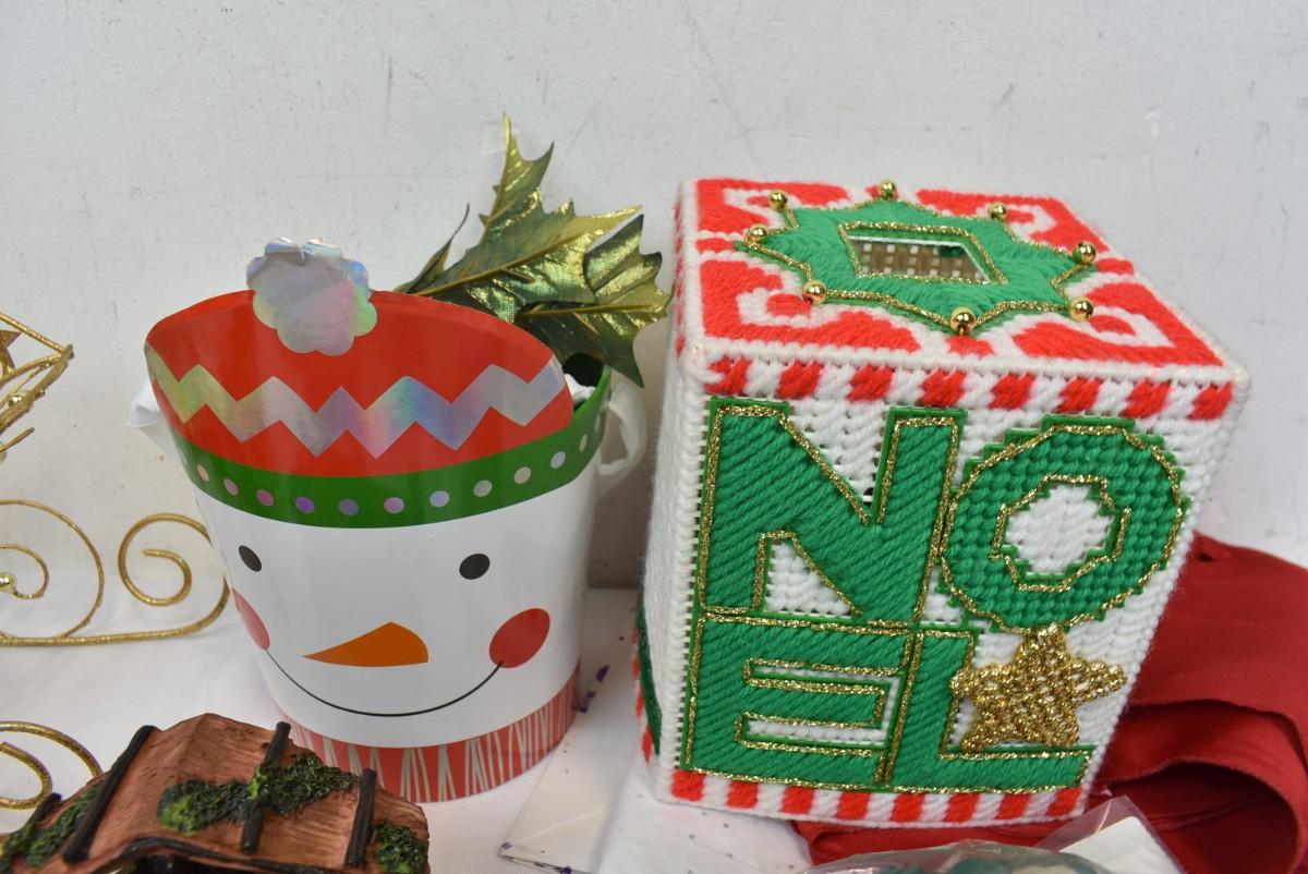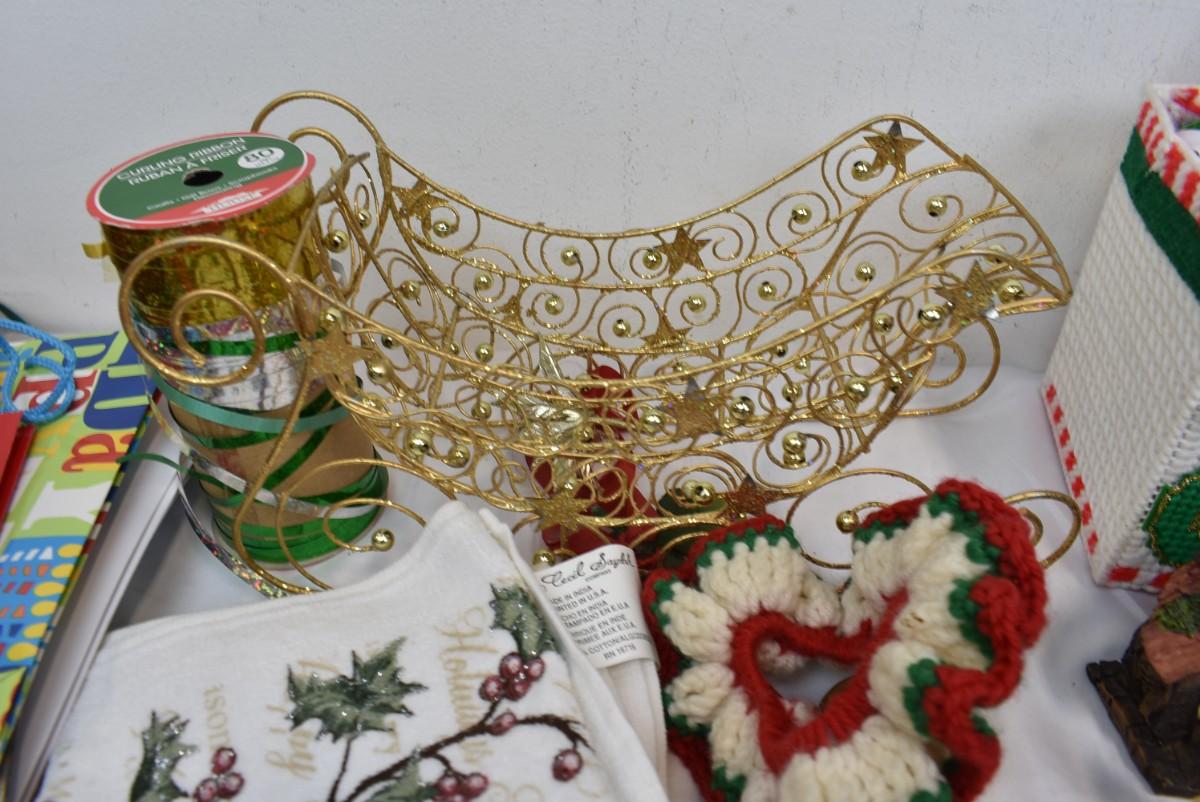 Christmas Lot: Small Nativity Set, Gift Bags, Ribbon, Sleigh
