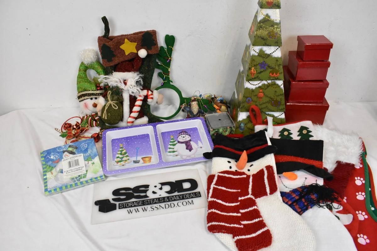 Christmas Lot: Stockings, Gift Boxes, Ornaments