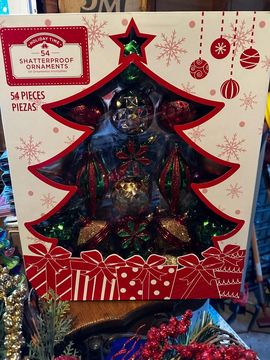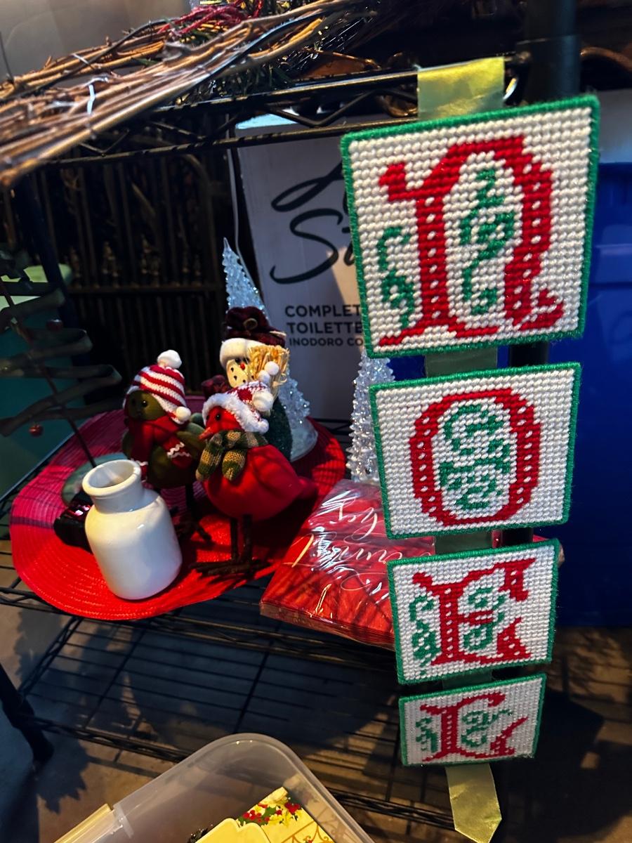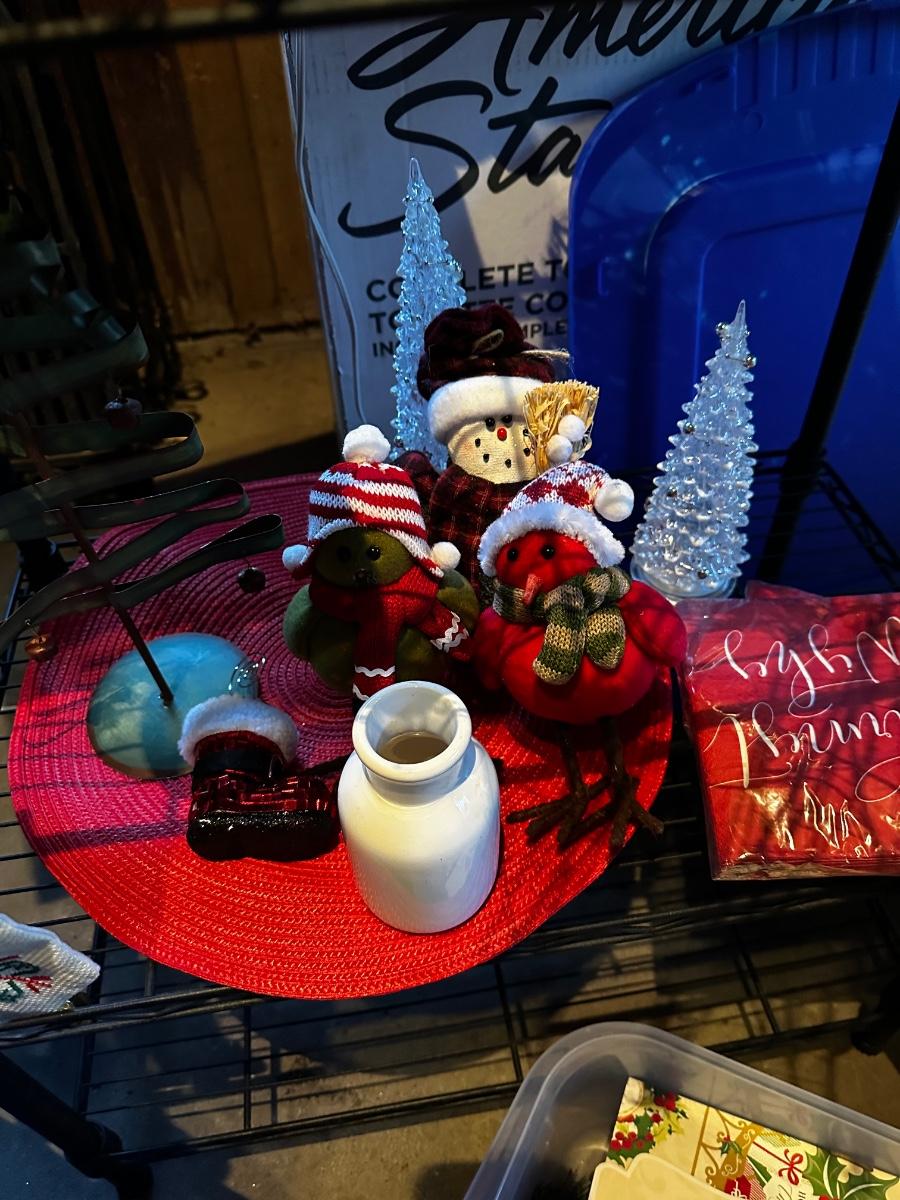 Miscellaneous Christmas items, decorations and wrapping paper.