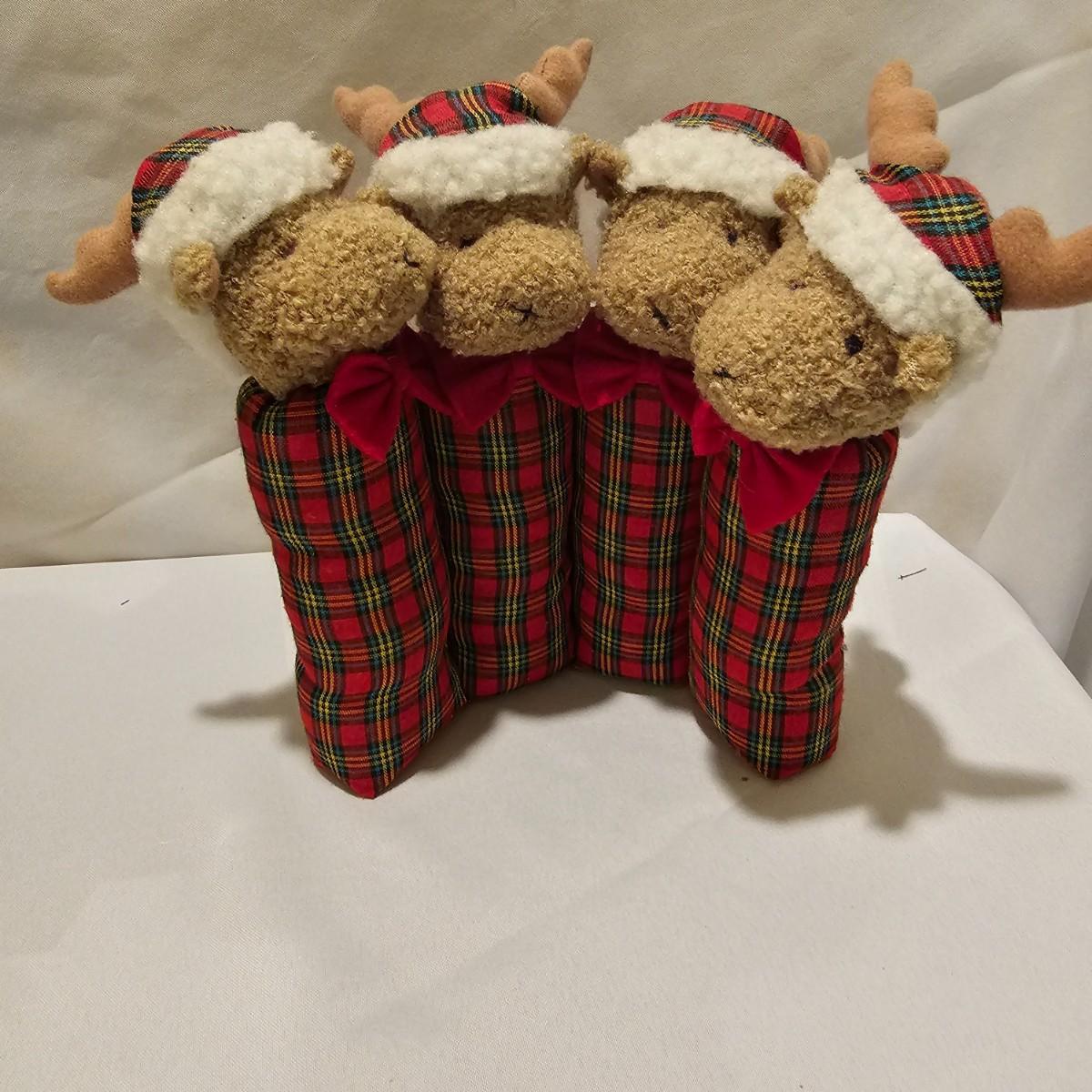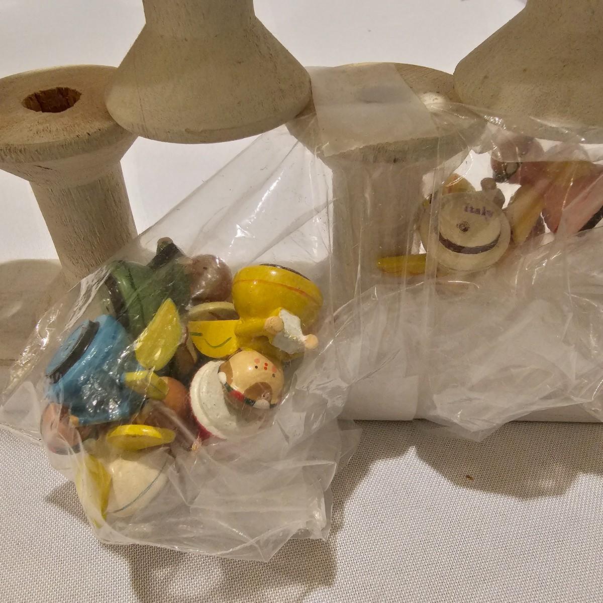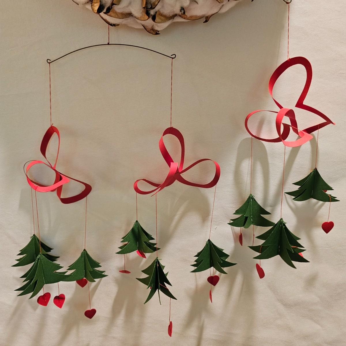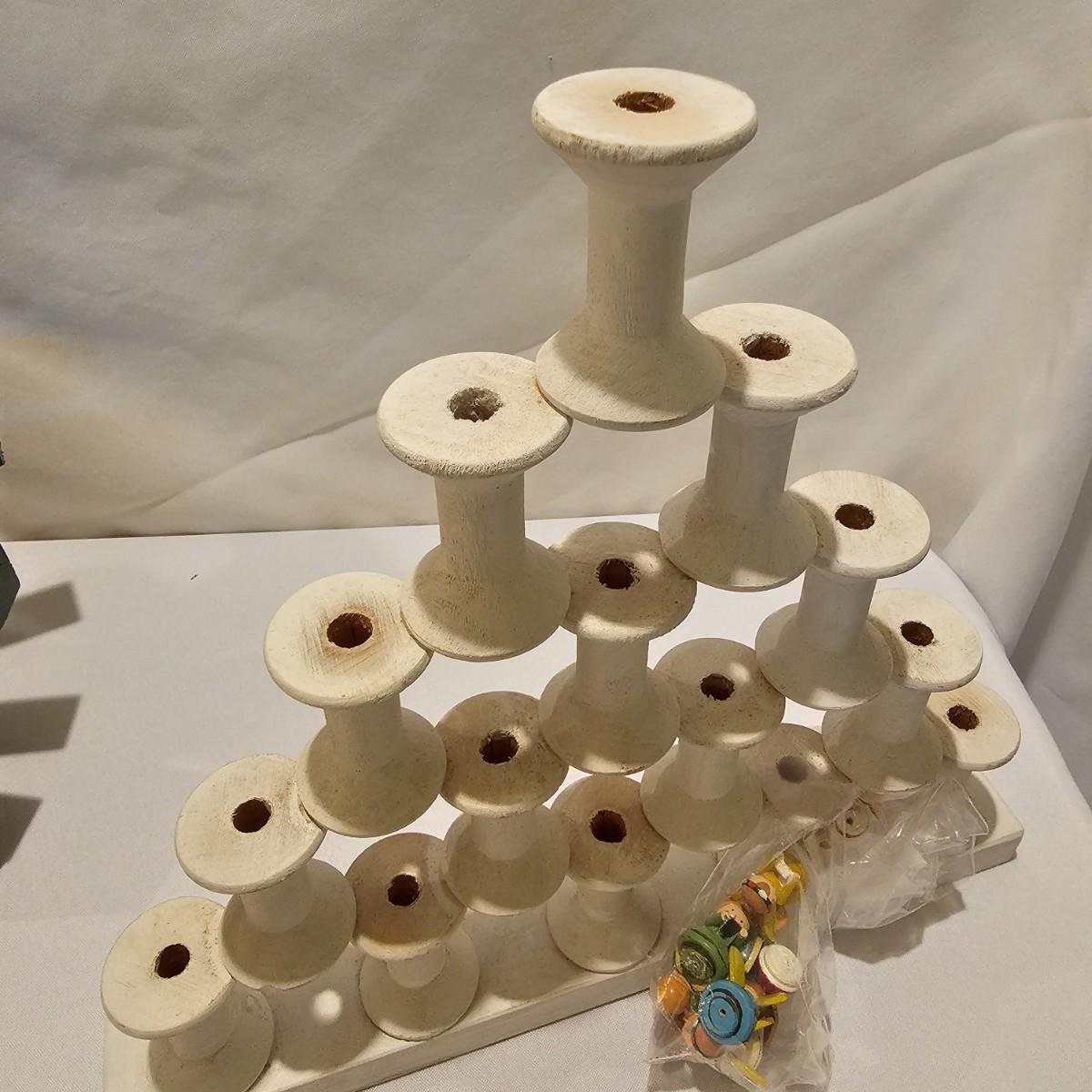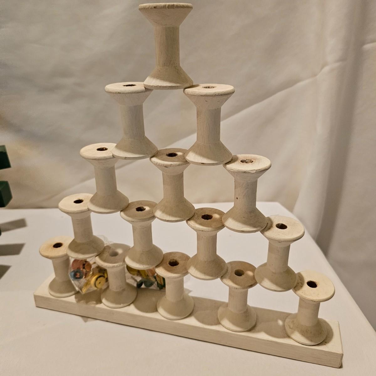 Fun and wonderful decorations from Christmas past. Cornhusk angel and tree, spool tree, wooden sleigh, fold up tree to hold lollipops, 14" x 25"H. Two 10"H paper mache Santas, a twirling tree with ribbons, 10" x 17"H. Needlepoint picture 10"sq x 2" deep. A tree and ribbon mobile and a 12"D wreath made from cotton and husks. Other assorted table-sitter items, see photos for details. Shipping available.
