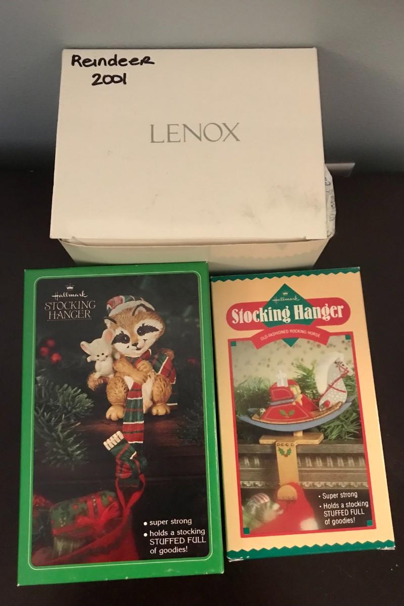 Beautiful Lenox Reindeer ornament and 2 stocking hangers
