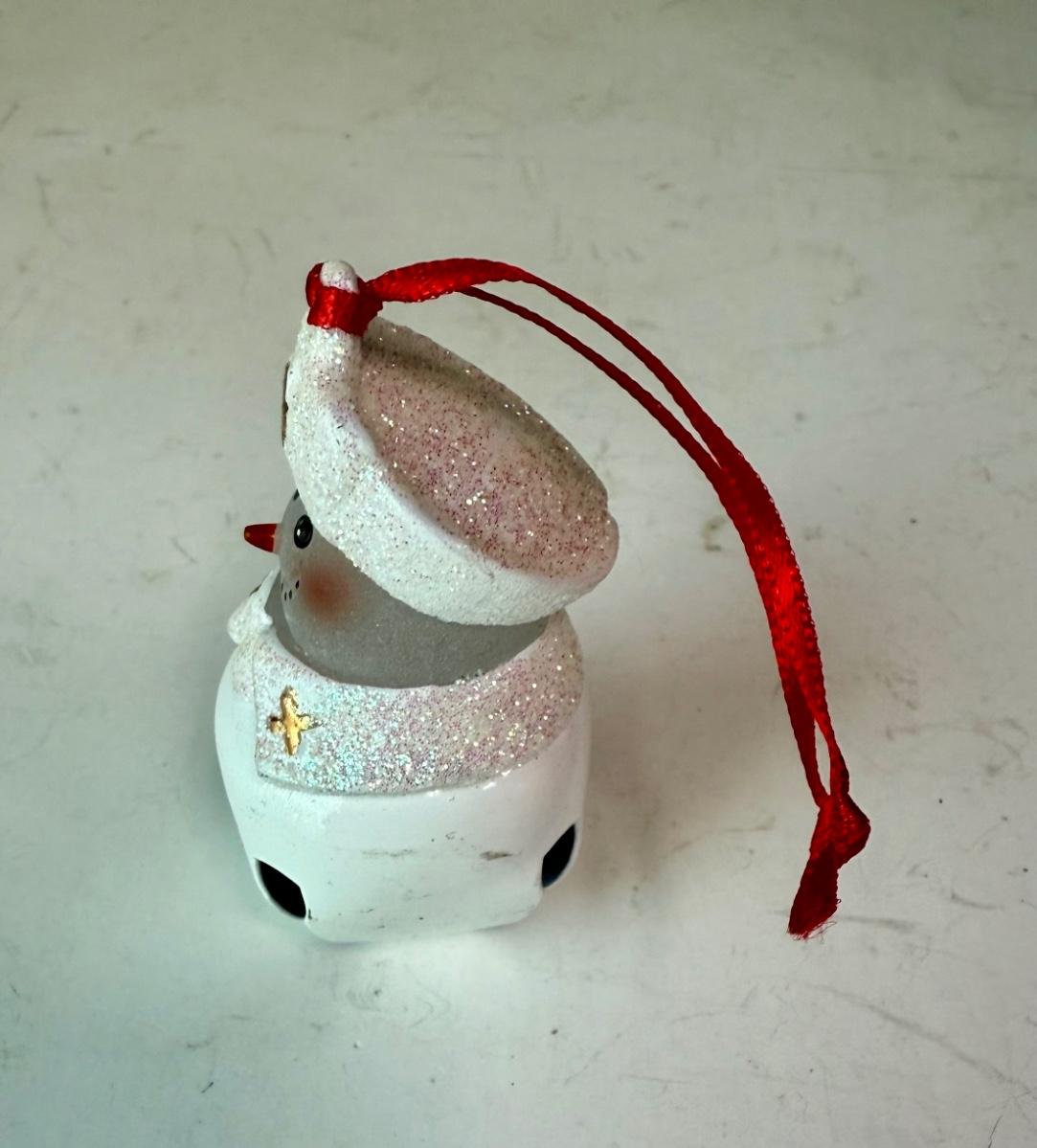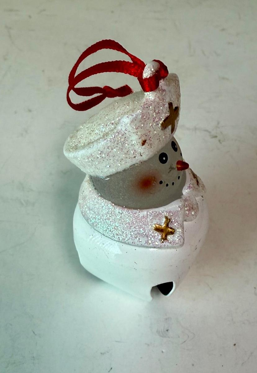 Cute Glass ornament with a bell as a base. Approx. 2.25" tall.