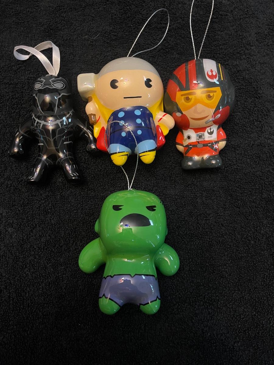 Spectacular 4 ornament lot of characters for Christmas. Collectors look!!!