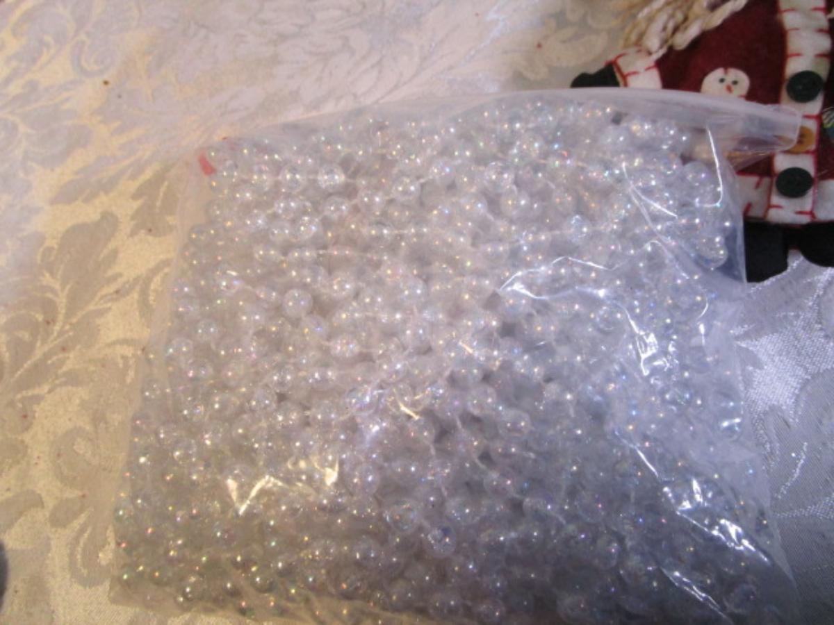 See pictures, 7 strings of beads are 3' long each.