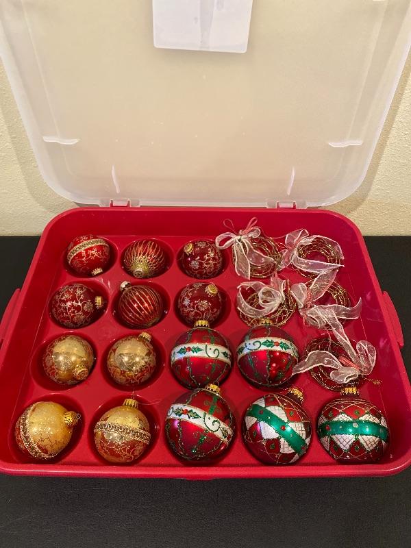 Glass Christmas Ornaments and Case