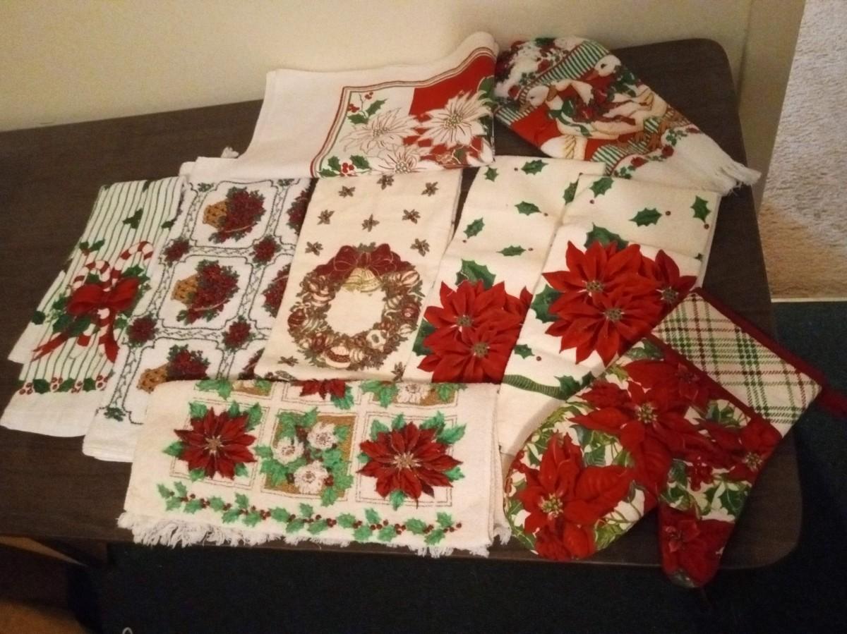 SOME VINTAGE CHRISTMAS AND DISH TOWELS