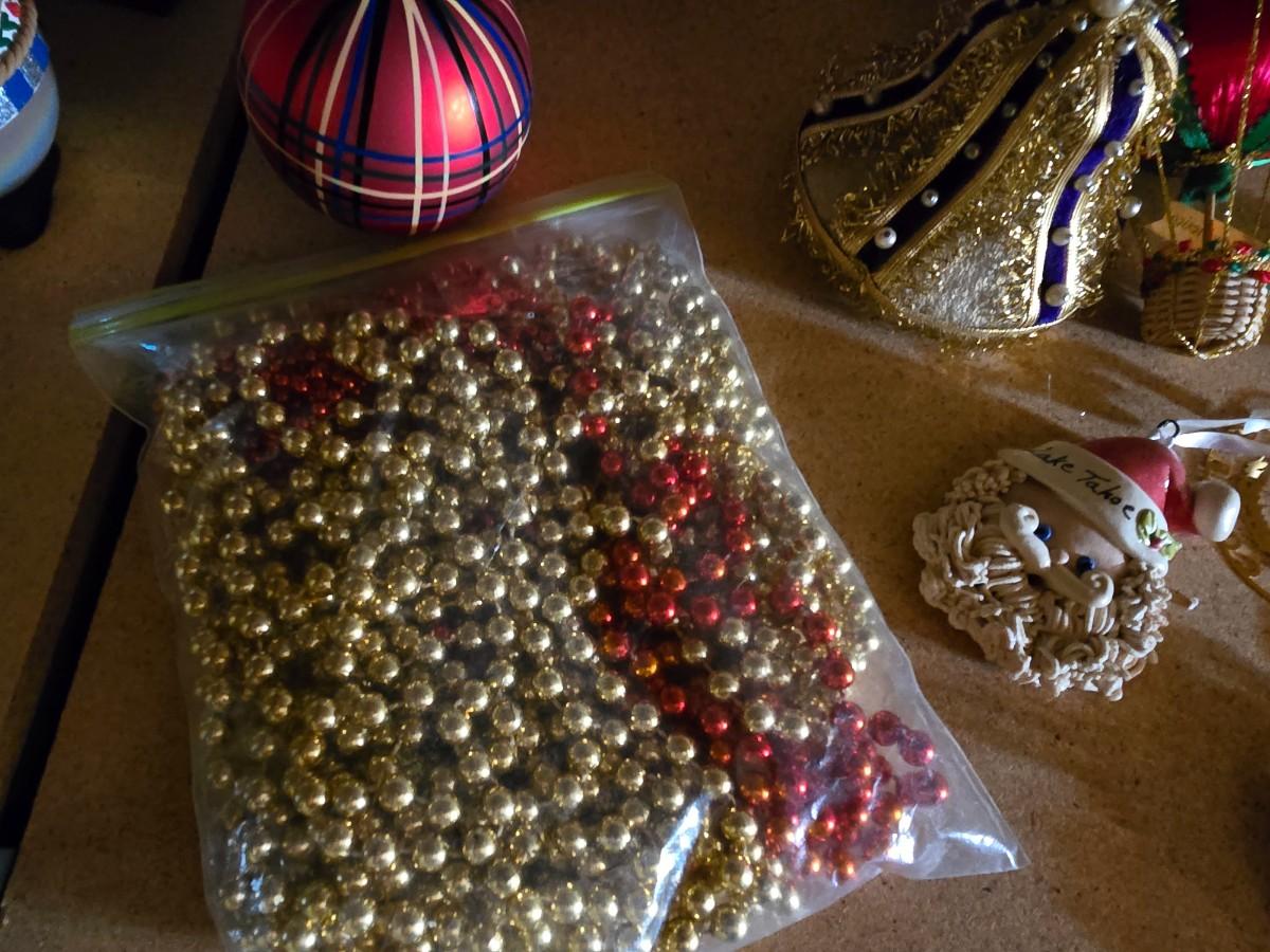 CHRISTMAS ORNAMENTS, BEADED GARLAND AND MORE