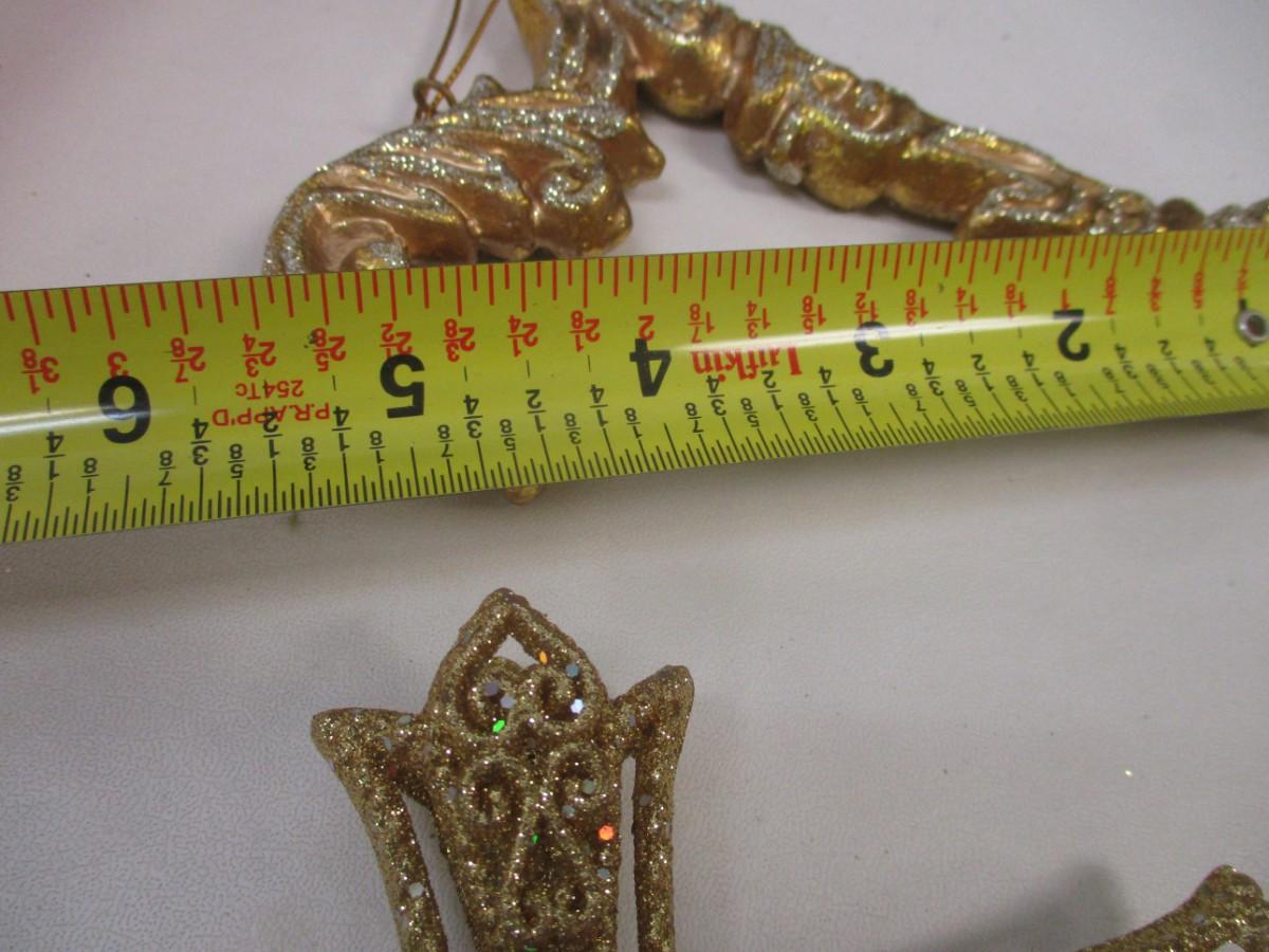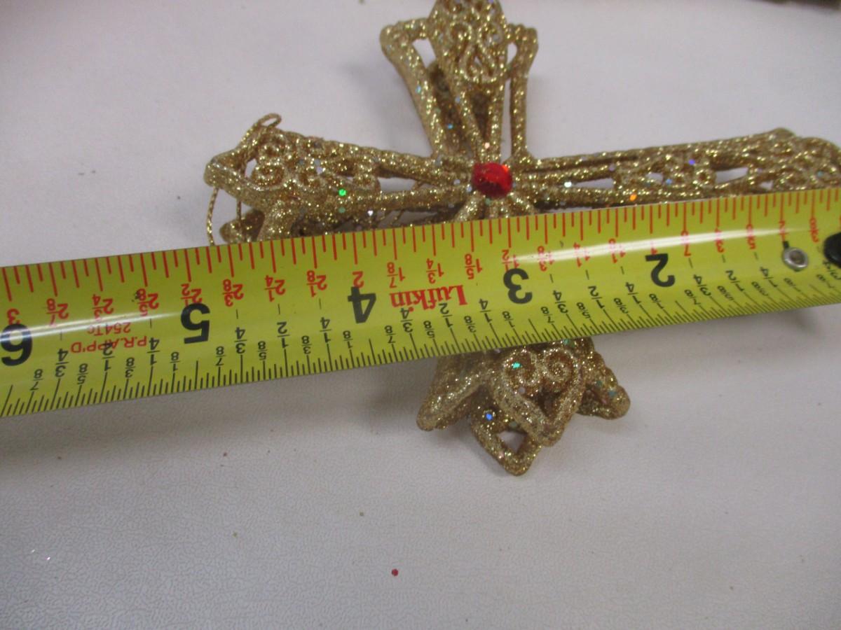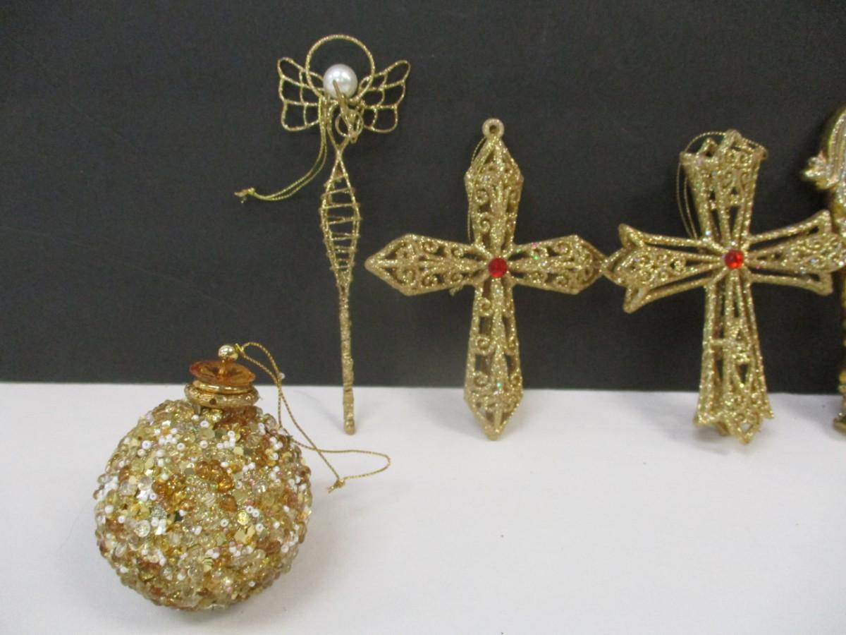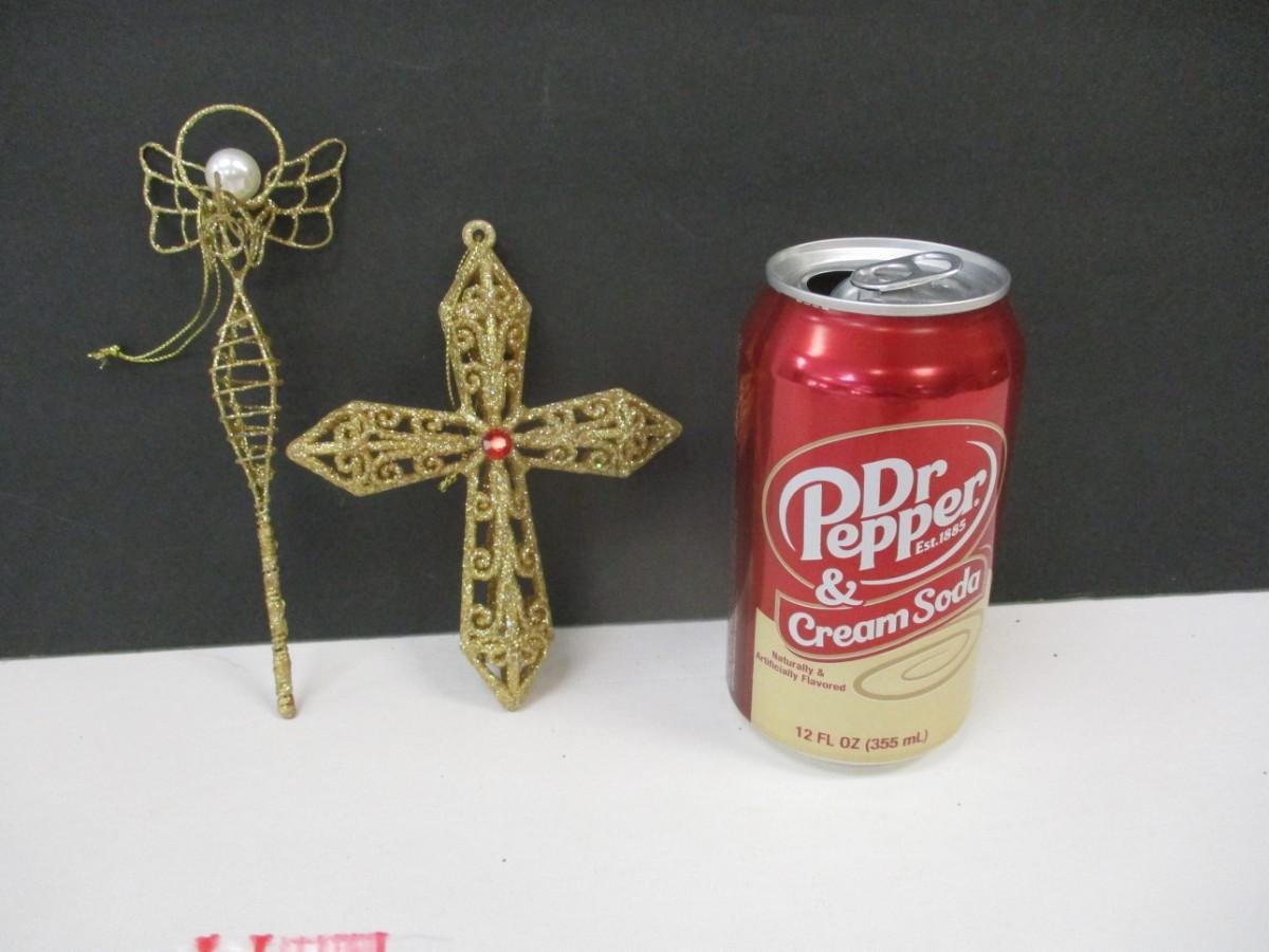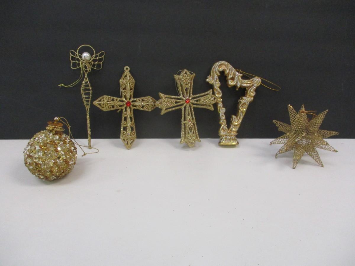 Christmas Ornaments Gold Glitter Crucifix Stars Harps