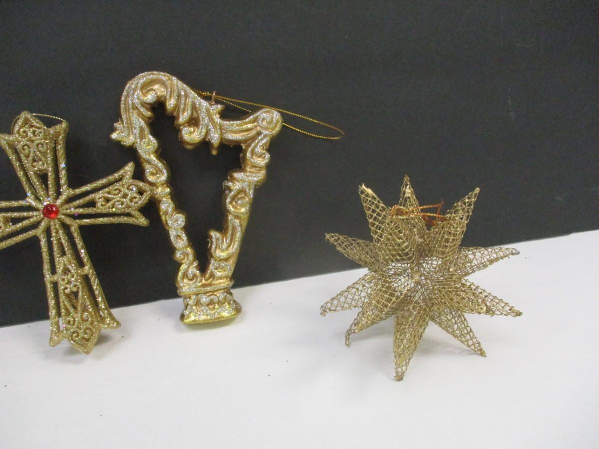 Christmas Ornaments Gold Glitter Crucifix Stars Harps Lot 9