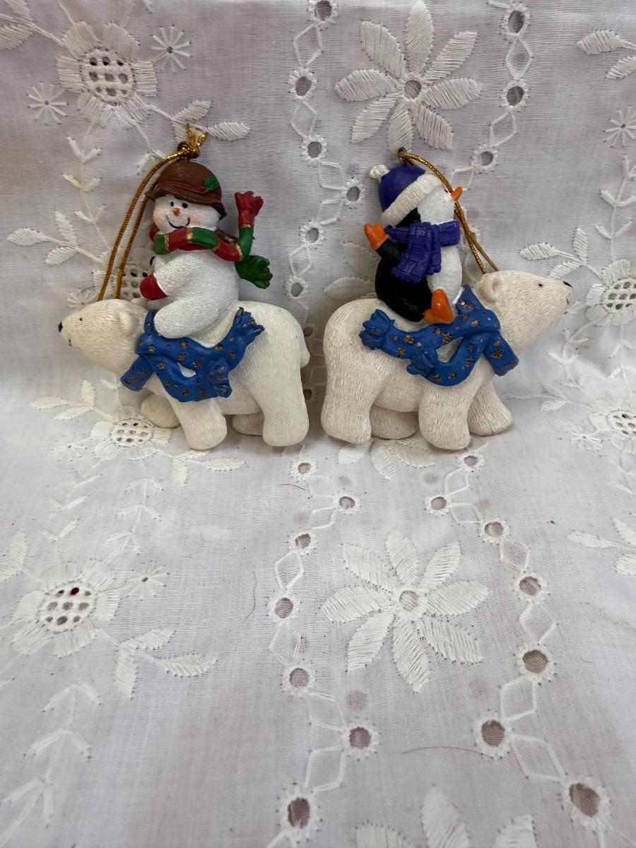 Christmas Ornaments Polar Bears Snowman Penguin 3” Set of 2