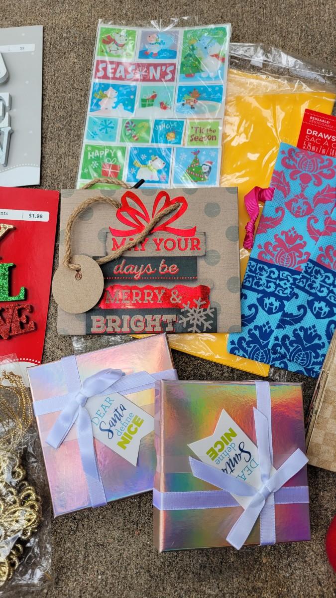 All new. Tape, Gift Tags, Small Bags, Boxes, Gift Trim Additions