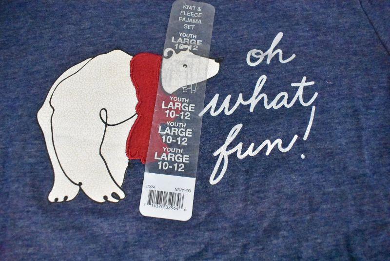 Christmas Pajama Set: Blue/Polar Bear, Youth Large 10-12 - New