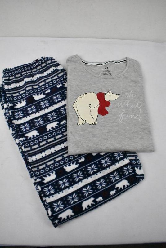Christmas Pajama Set: Gray/Blue with Polar Bear, Women's Size Large - New