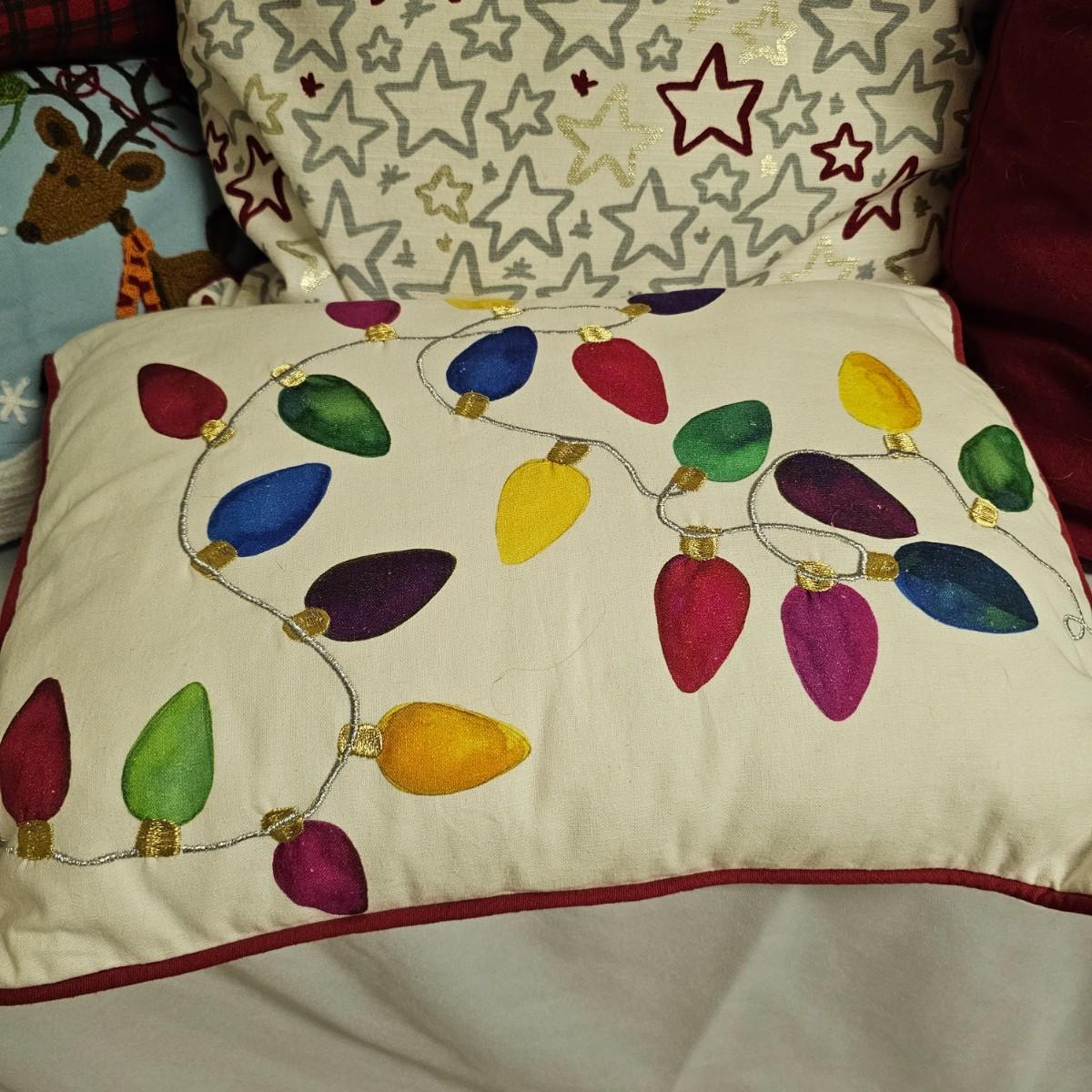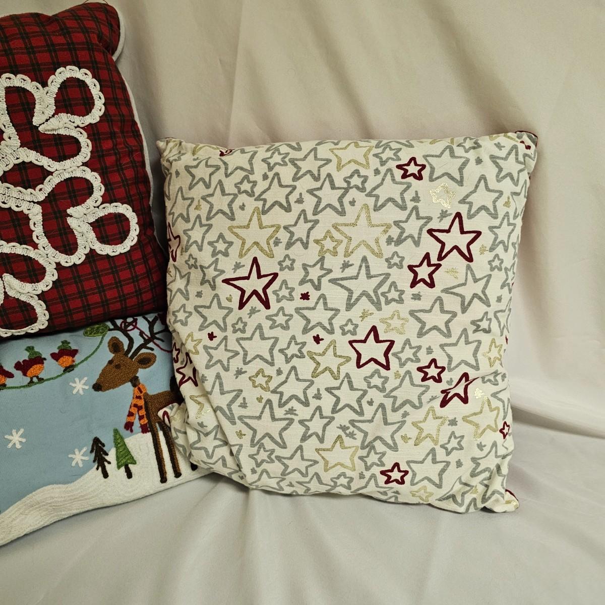 Fun festive pillows for the holiday season. Nine different designs and patterns. Smallest is 11"Sq, largest is 17"Sq. See photos for details. Shipping available.
