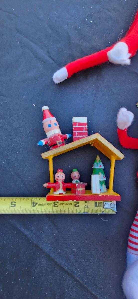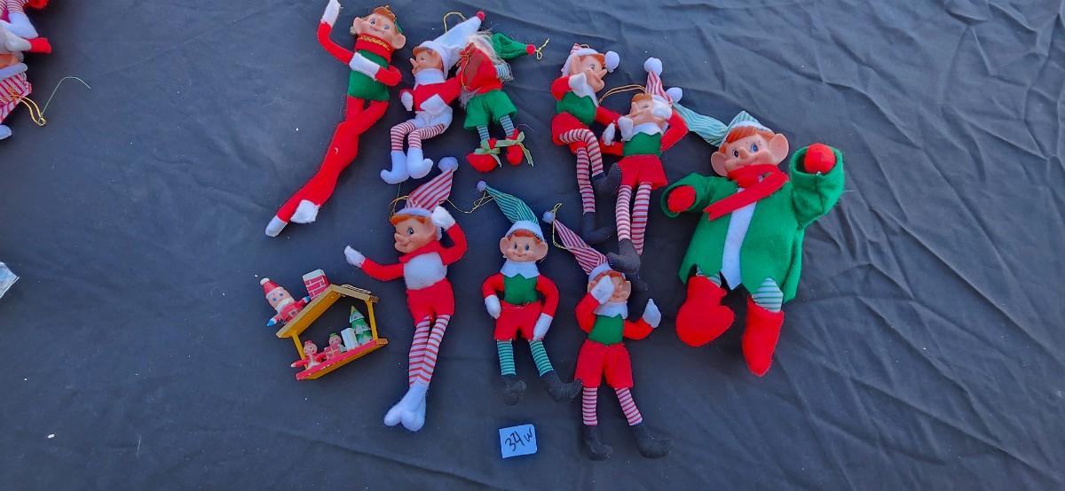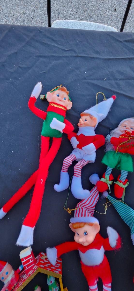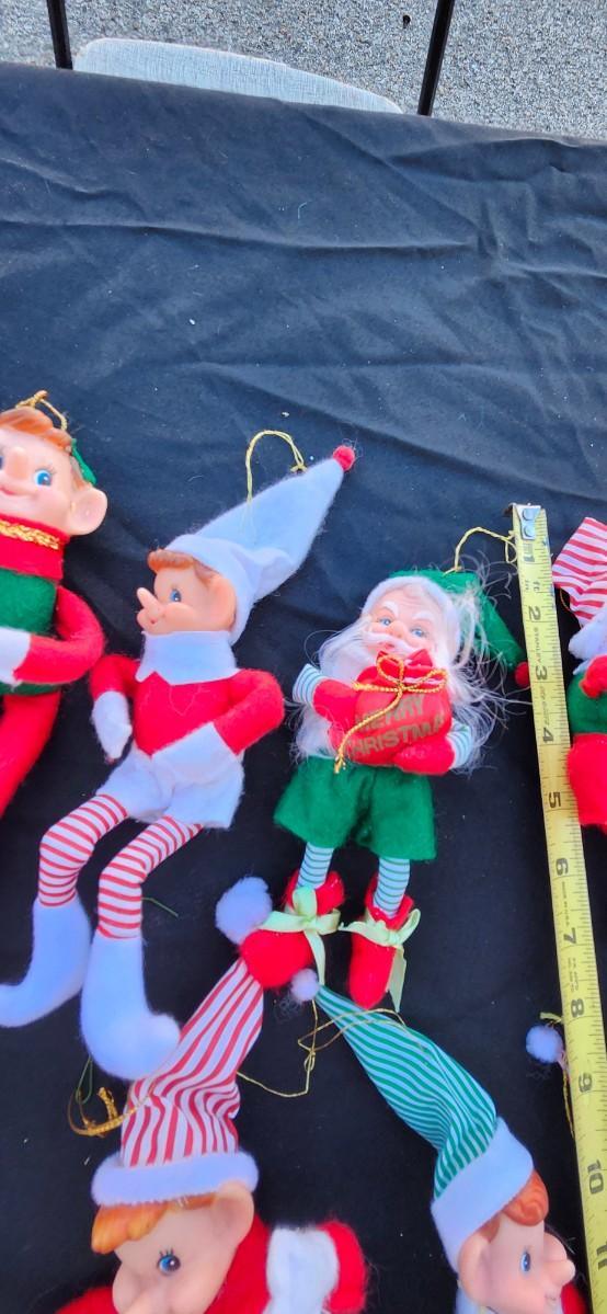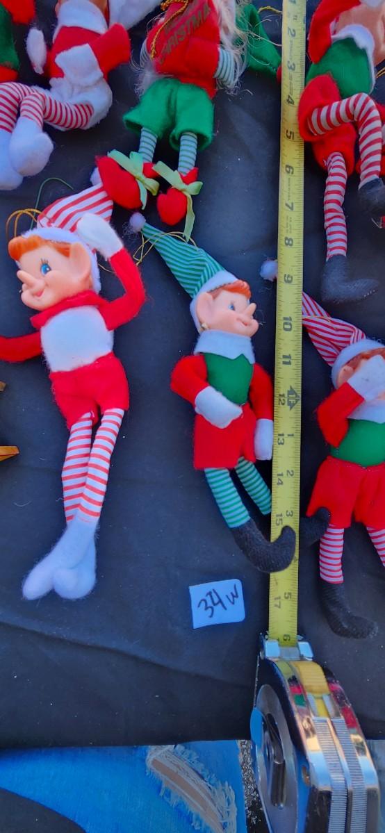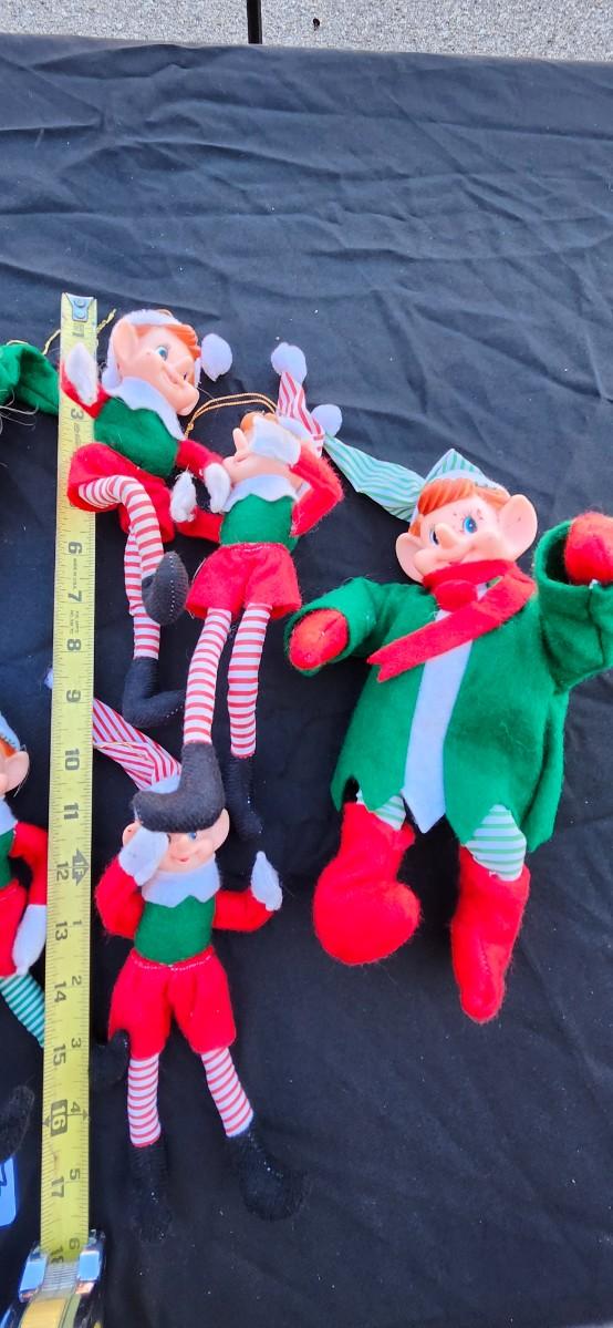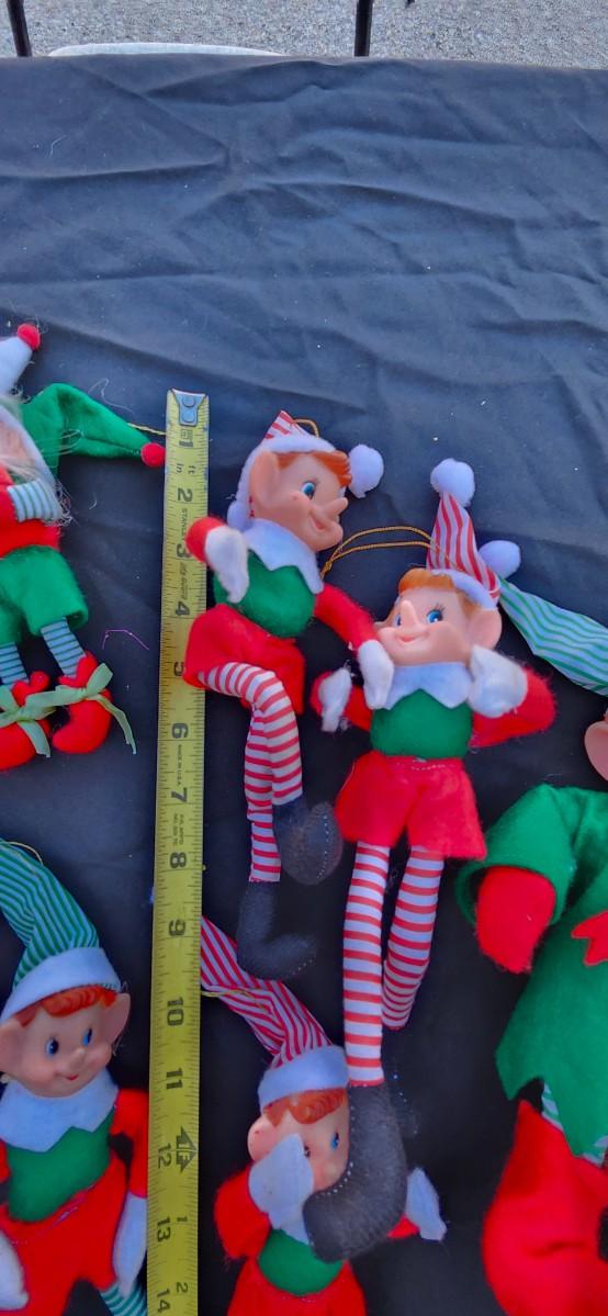 This is a lot Christmas Pixie Elves. They are green and red with striped legs. . In good condition. Please refer to the pictures as they are part of the description.