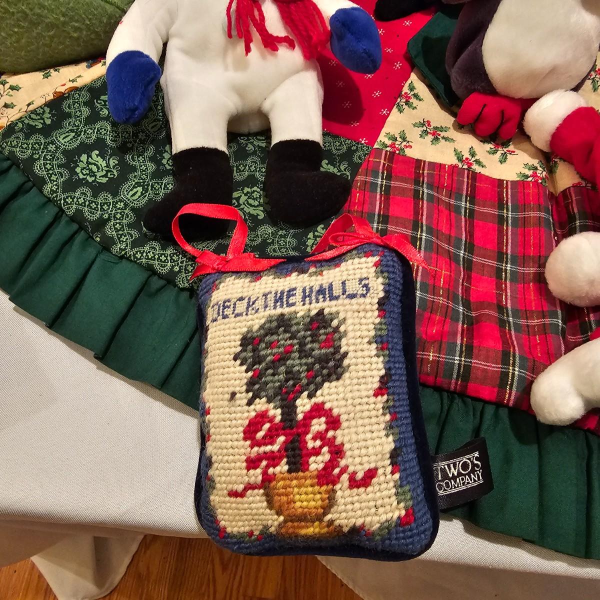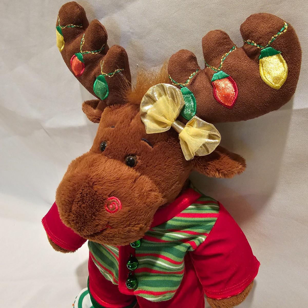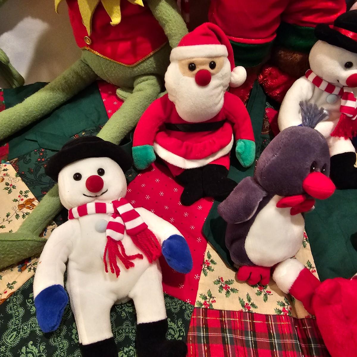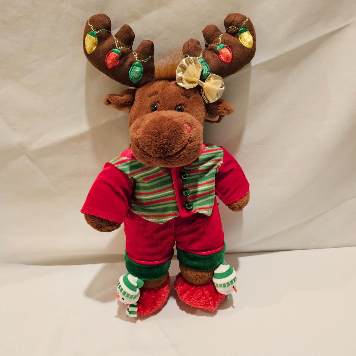 Fun stuffed characters in Christmas attire. Kermit, Goofy, Santa and others show their best holiday duds. Moose is 20"H. Also includes a hat, stocking and tree skirt, 44"D. See photos for details. Shipping available.