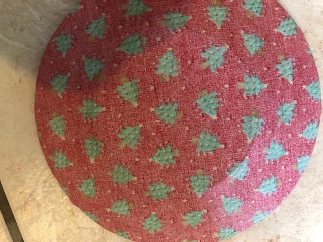 Ho Ho Ho, it will be here before we know it. Cute Santa mat with decoupage Christmas tree plate.