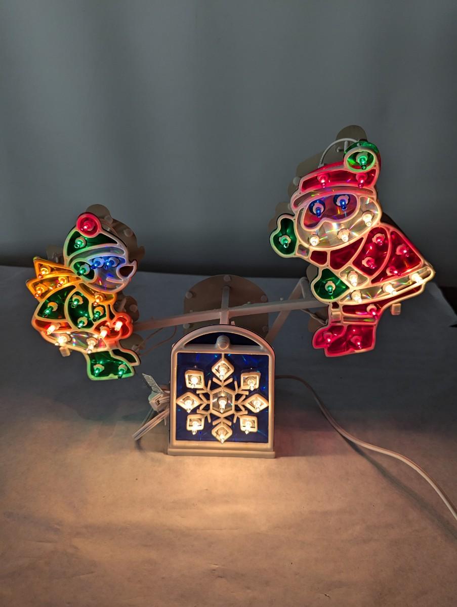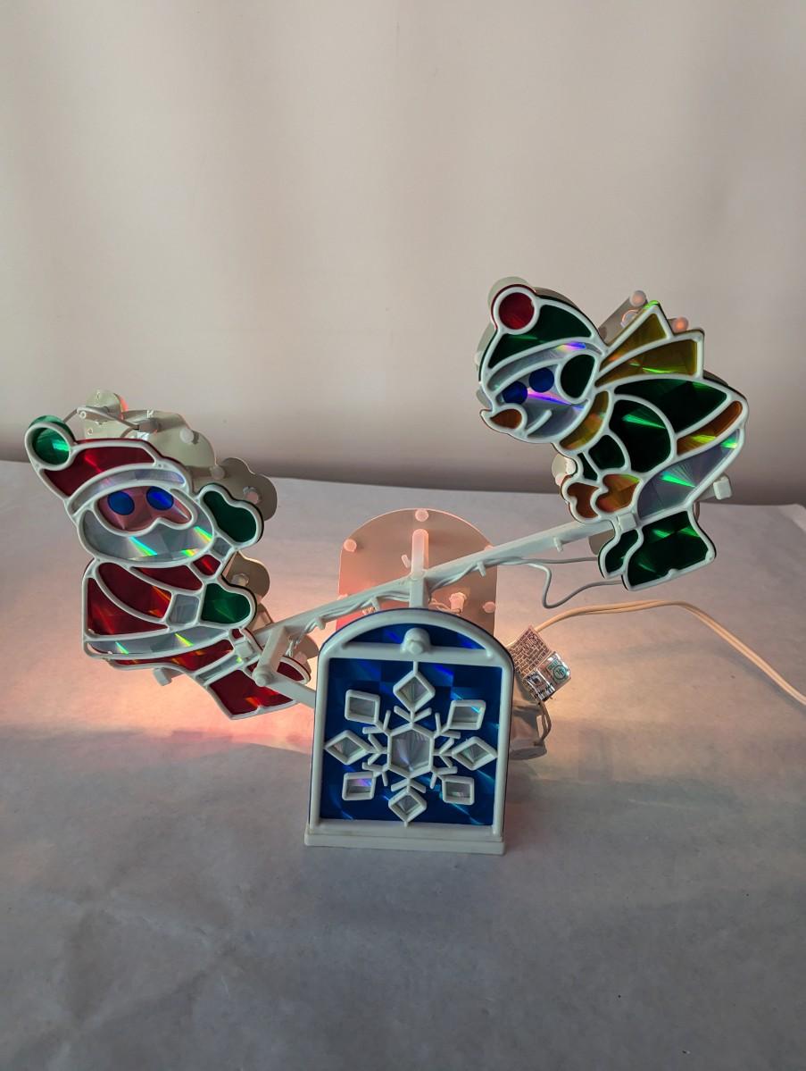 Christmas Santa & Snowman Lighted Holographic Seesaw Teeter-Totter