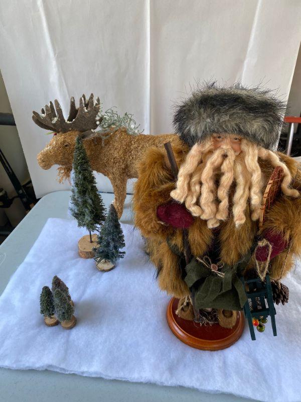 Lot # 595 Christmas Santa with Moose and Tree Decor