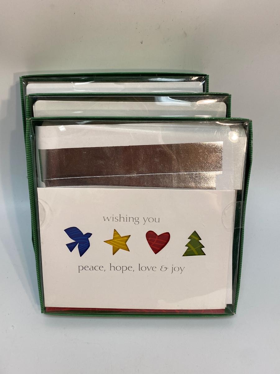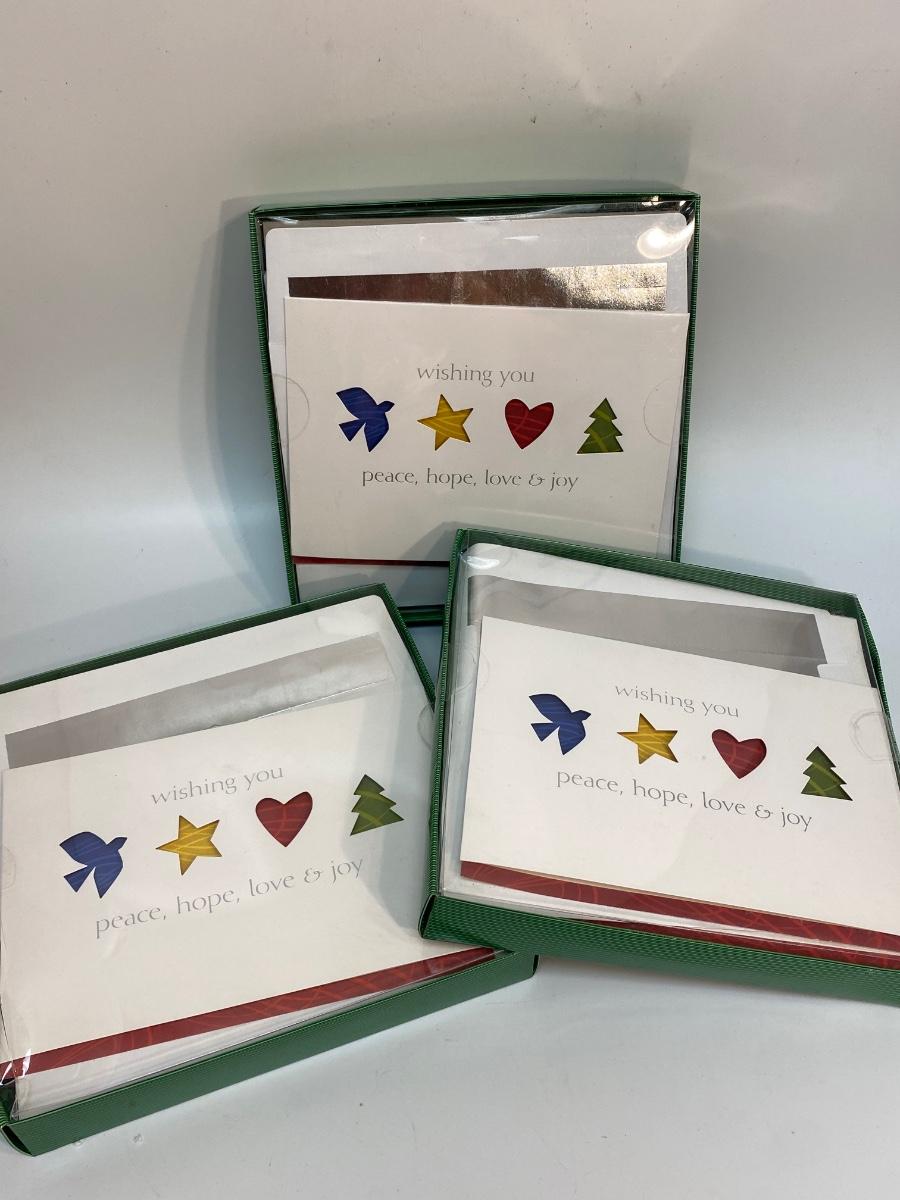 Christmas Seasonal Holiday Cards. Matching boxes of cards, one box seems to be unopened, the other two wear possibly opened and may be missing a card or two.