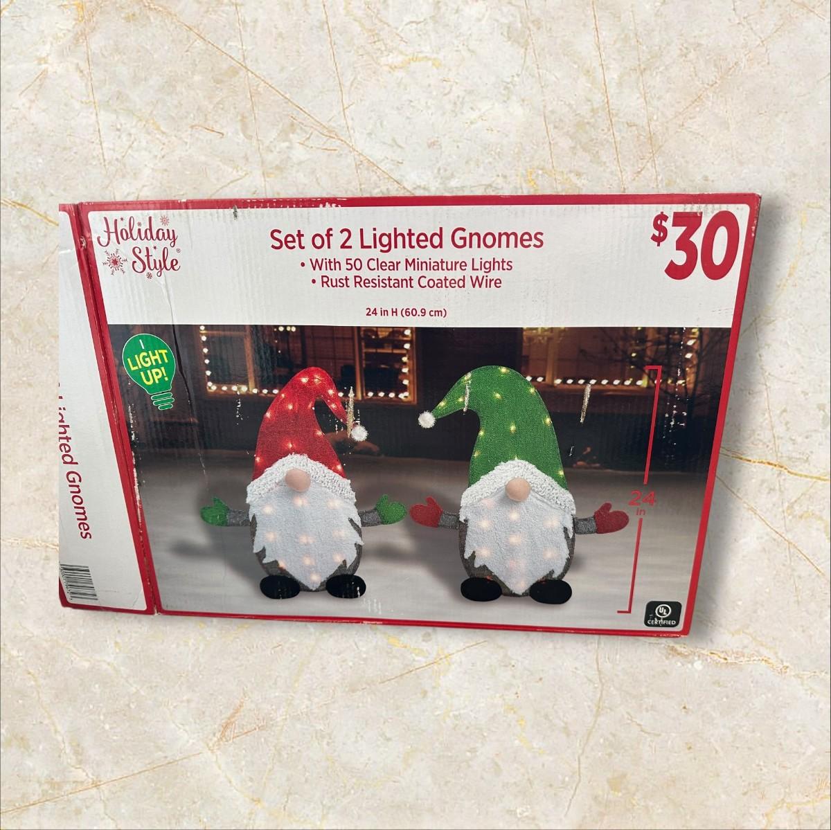 Christmas- Set of 2 Lighted Gnomes; Tested/Works, all pieces are included