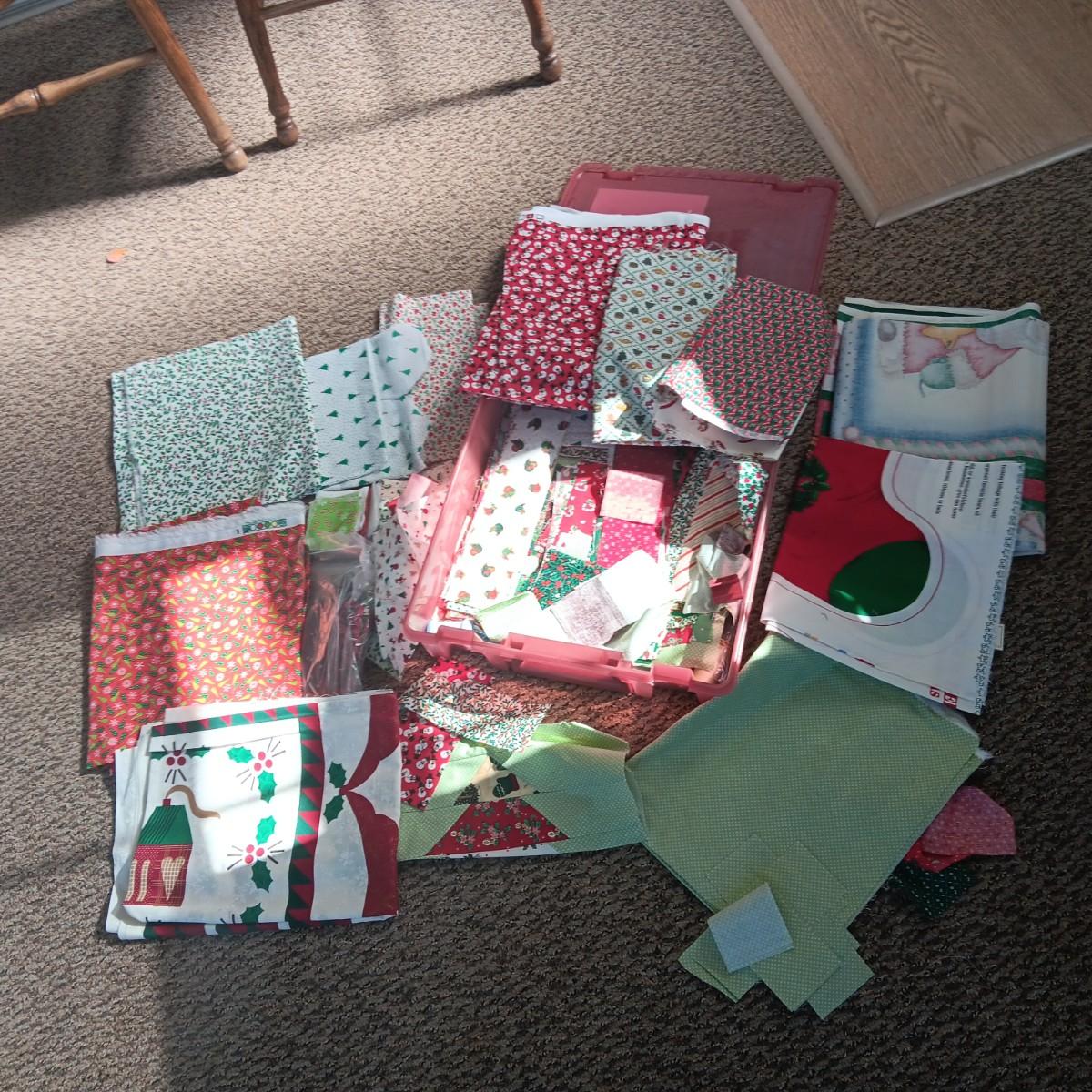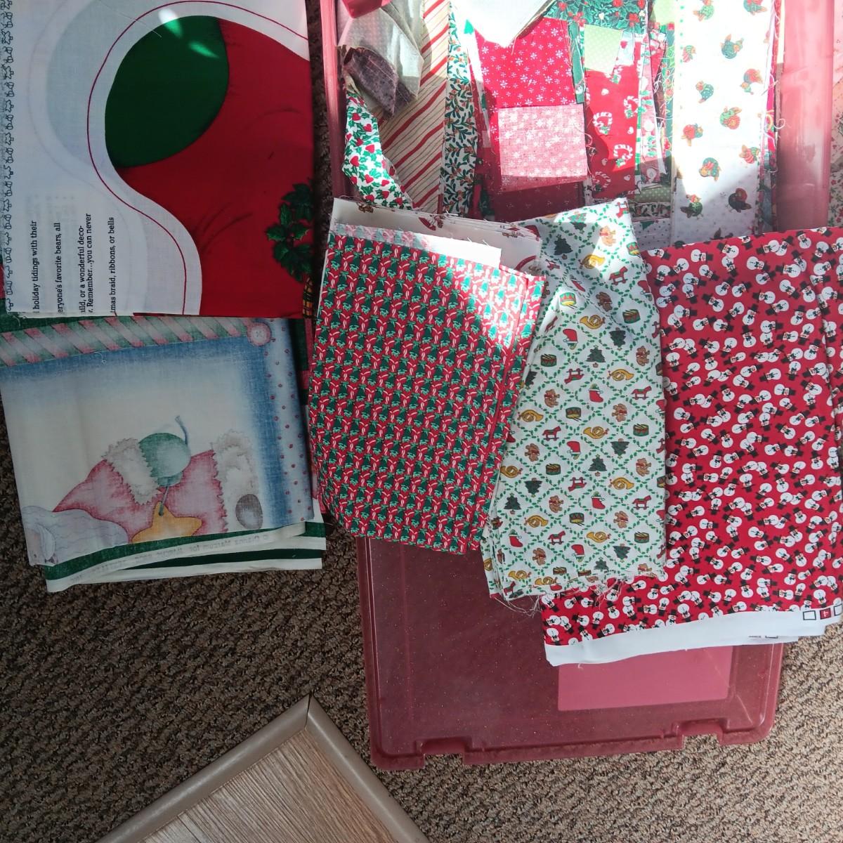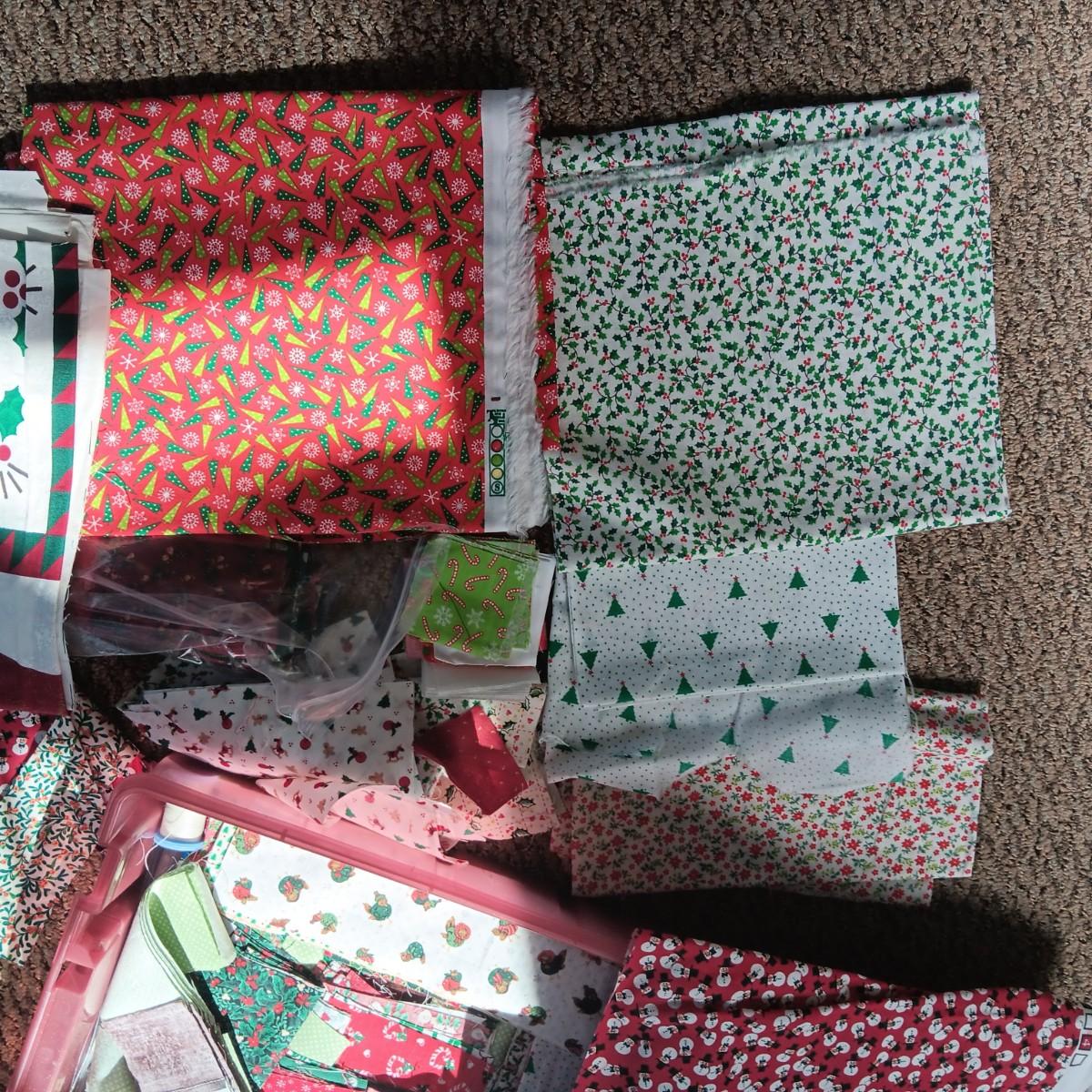 CHRISTMAS SEWING MATERIAL, SOME CUT FOR QUILTS/CRAFTS