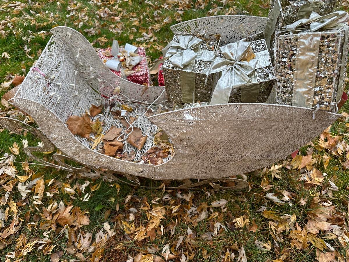 CHRISTMAS SLEIGH PRE-LIT SILVER MESH & METAL OUTDOOR CHRISTMAS DECORATION